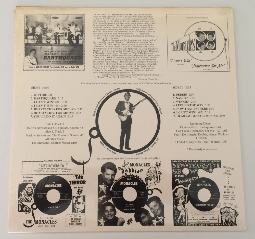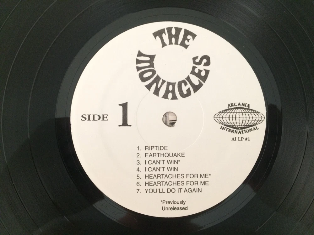 artist The Monacles label Arcania International title The Monacles cover condition Mint- no seam splits, still in shrink record condition Mint- notes Compilation LP of 45's and unreleased material from The Monacles. Grading scale: NM / VG++ / VG+ / VG / VG- / G+ / Poor I combine S&H on multiple orders and have no problem starting a stack if you wish to combine S&H for future orders. Please view my other listings for more desirable 45's, 78's and LP's in the country, bluegrass, gospel, rockabilly, rock & roll, teen, instrumental genres.