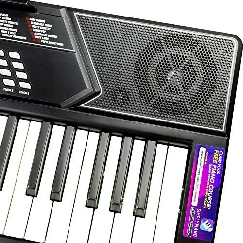 The Keyboard Piano Super Kit includes a 61-key keyboard, a keyboard stand, a keyboard bench, and a pair of high-quality over-ear headphones all in one box. The 61 key keyboard piano has the latest chipset (2020) that provides you with the highest quality sound output and functionality including 200 tones, 200 rhythms & 40 Demo songs that are all played through the two integrated stereo speakers. It also has USB and AUX inputs that allow you to play along with your favorite songs via any mobile device or USB stick (MP3) through the keyboard itself. This keyboard can be powered by both batteries (6 x 1. 5V Size D batteries) and main power (Mains power adapter included) so it can be used both portably and in the home. To accompany all of the above the keyboard piano has a record and playback function (46 note memory, ) three teaching modes, metronome, split keyboard mode, sustain and transpose are all easily accessible from the clear LED display on the keyboard. To complement this high-performance keyboard is a durable and stable keyboard bench, a keyboard stand and high quality over the ear headphones so you can practice in privacy without disturbing others. For the budding musician, this package also includes access to exclusive content within the Simply Piano application (IOS & Android) which means you can be playing along to your favorite songs in minutes. TakeLessons also provides you with face to face and group lessons. The 5061 keyboard piano super kit includes a digital keyboard with 61 full-size keys giving you that traditional piano feel whilst maintaining a portable and compact design that can be powered by either mains (power supply included) or batteries This 5061 piano keyboard features a LED panel that both displays and engages the 200 rhythms, 200 tones, a teaching function, and 30 demo songs that are part of its functionality The 5061 electric piano has record and playback functionality allowing you to build layers to your sound and an aux input so you can play along to your favorite songs This music keyboard super kit package includes a keyboard stand that is sturdy in design and can be adjusted to suit keyboard piano players both young and old This electric piano keyboard super kit contains a padded seat that is easily folded and has a thick padded seat for hours of comfortable play
