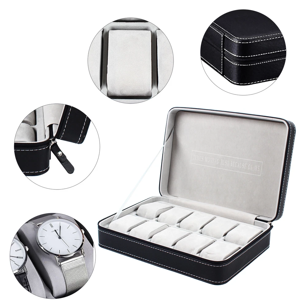 This watch box is a stylish and practical way to store and organize your timepieces! The soft PU leather feels premium, and the padded slots keep watches secure while preventing scratches. I love the multiple size options—perfect whether you have a small collection or a growing one. The zipper closure ensures everything stays in place, and the compact design makes it easy to travel with. Great value for the quality!