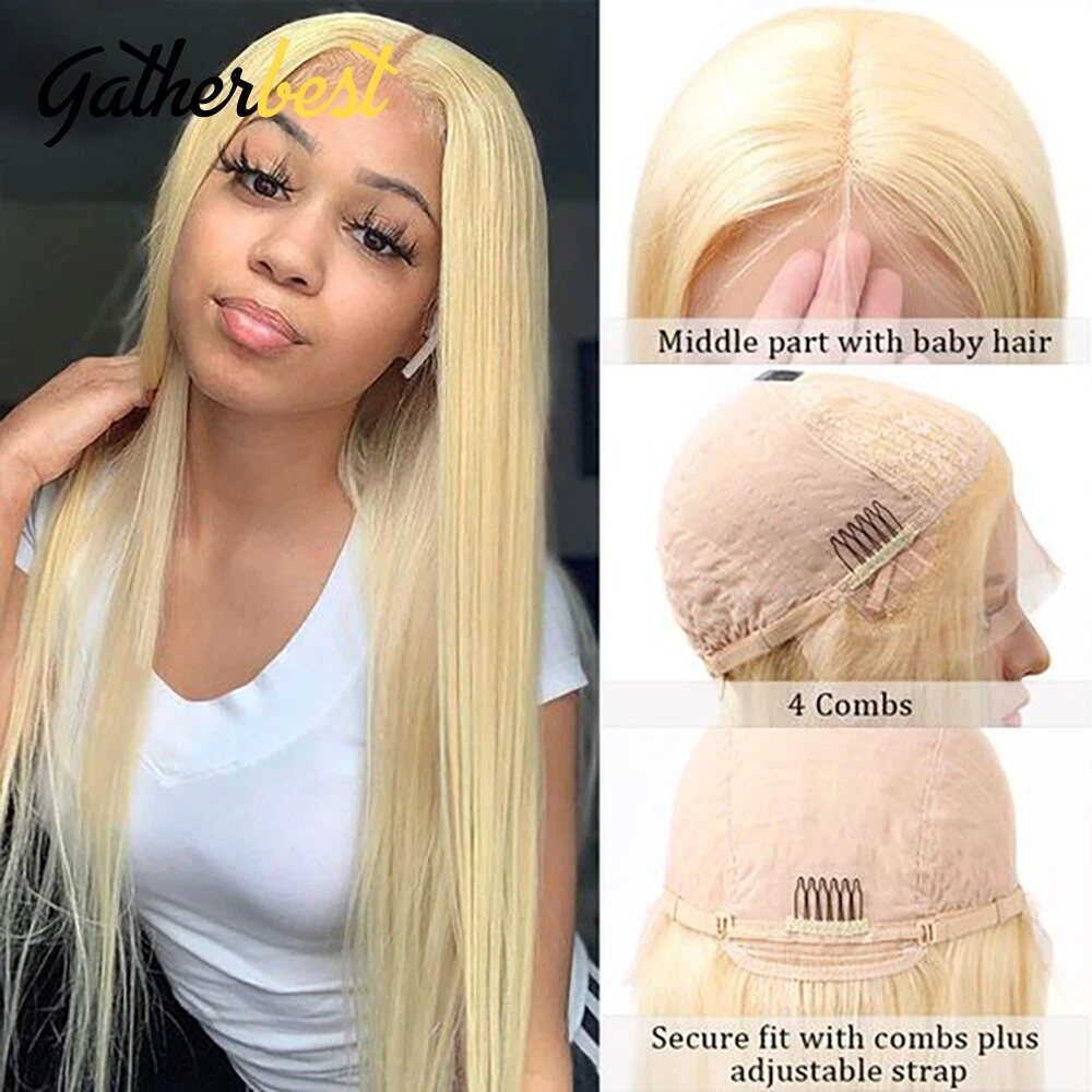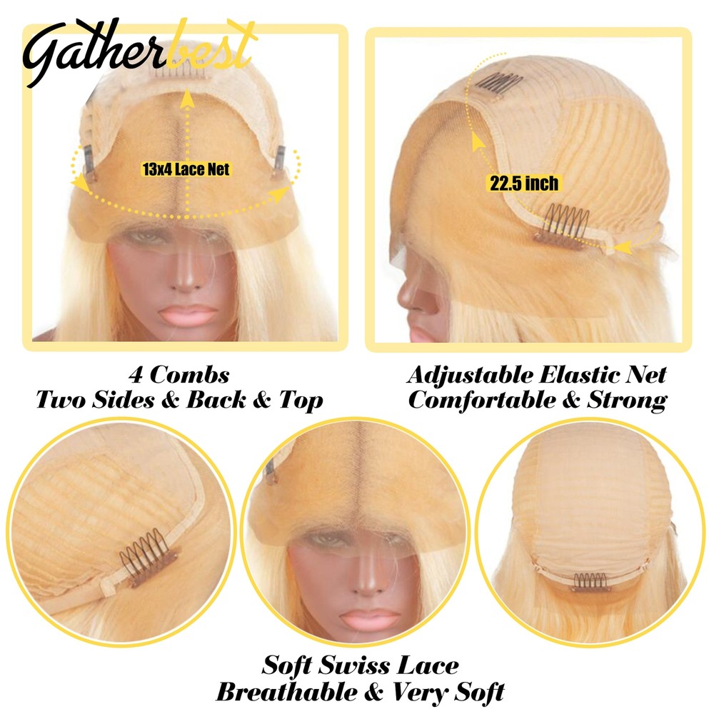 Welcome to join the GatherBest Human Hair family! 100% Brazilian Virgin 613 Blonde Straight Human Hair Lace Front Wigs With Baby Hair,Full Cuticle Aligned,Can Be Dyed ,Permed, Highlighted, Curled or Styled As Your Own Hair The Beautiful Blonde Straight Human Hair Wigs is Perfect for Daily Styles, Concerts, Weddings, Theme Parties, Dates Gifts and Any Other Occasion. Let You Be A Fashion and Unique Lady to Show Your Beauty Material: 100% blonde human hair wigs.No synthetic fiber/animal hair mixed Hair Style: Straight lace front wigs human hair Hair Color: #613 honey blonde lace front wig human hair GatherBest hiar-Your Best Choice! FAQ Q1.Is It Shedding ? A1.All of our wig no shedding ,but there will be a little broken hair and attached hair due to static electricity ,after u washed,it will be ok . Q2.How to Measure the Hair Length? A.Firstly, stretching the hair to straight, then measure it from top to end. Q3.How to Identify Human Hair? A4.Using a burning experiment, the real hair will turn into black balls when it is burned. If you rub it with your hands, it will turn into powder and smell a kind of burnt protein.
