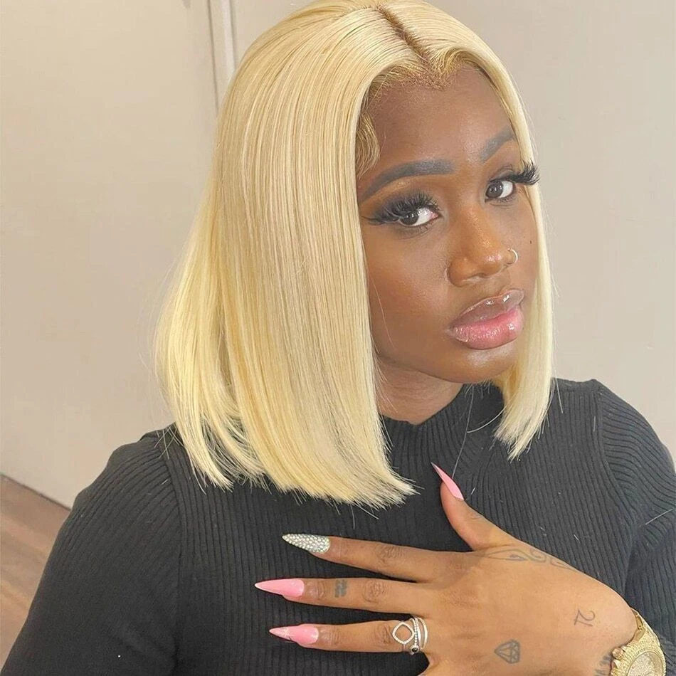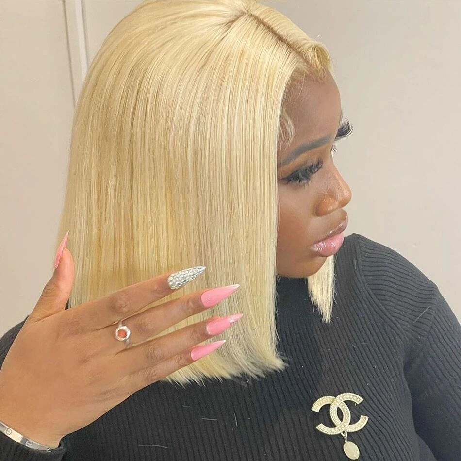 Product Information Hair Material: 100% Virgin Hair Color: 613 Honey Blond Color Cap Size: Medium 22.5", Can Customize Bigger Or Smaller Cap Dendity: 180% density, Luxuriously Full& Soft lace size: 13x5x1 T Part Lace Front Bob Wig Lace Color: Transparent Hair Lifepan: No tangle, No Shedding, Low Maintenance,12-24 Months Life with Proper Care Delivery: Fast Shiping 5-7 Work Days