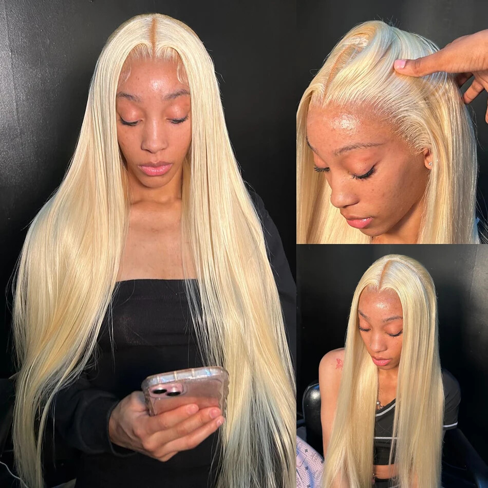 $ 109.4913x6 HD Transparent 613 Blonde Brazilian Lace Front Human Hair Wig Bone Straight