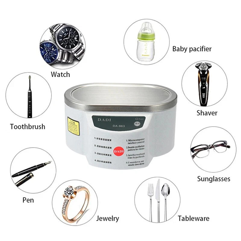 1.Please Remove The Protective Film Before Use Features: - Simple button, easy to operate, 30W/50W or 30W, washing time approx 5 min. - It can remove dirt and grime effectively, even the part normally require tedious manual cleaning by hand, and even the part we can not reached. - With good cleaning effect and will not hurt any surface. - Perfect for cleaning and sterilizing fruits, vegetables, glasses, shaver heads, dentures, watches, jewelry, camera lenses, circuit board, electronic components, surgical instruments and so on. - It also can be used to mixed drink, mix different chemical reagents. - Equipped with one stainless steel cover, prevent inside liquid overflow, very convenient. - There are four non-slip bases, keep the machine solid and help prevent the water into the main machine. - Heat emission hole in the bottom, fine thermolysis and quickly. Note: Please dry the water and place it after use to avoid rust! Specifications: Power: 30W Plug: EU plug(220V),US plug(110V) Inside can capacity: 628ml Working frequency : 40KHz Can size: 168 * 42 * 89mm Item size: 190 * 145 * 93mm Item weight: 600g Package weight: 730g Package size: 215 * 170 * 130mm Power: 30W and 50W(optional) Plug: EU plug(220V),US plug(110V) Inside can capacity: 635ml Working frequency : 40KHz Can size: 160 * 80 * 42mm Item size: 182 * 105 * 100mm Item weight: 600g Package weight: 730g Package size: 215 * 170 * 130mm Package list: 1 * Digital Ultrasonic Cleaner 1 * Cover 1 * Manual Note: - If you did not receive your order in time, please use AliExpress to contact me, I will provide you with effective solutions.Thanks for your understandings. - Because the time difference between countries, if sales person is not online,she will reply your email within 5-10 hours.