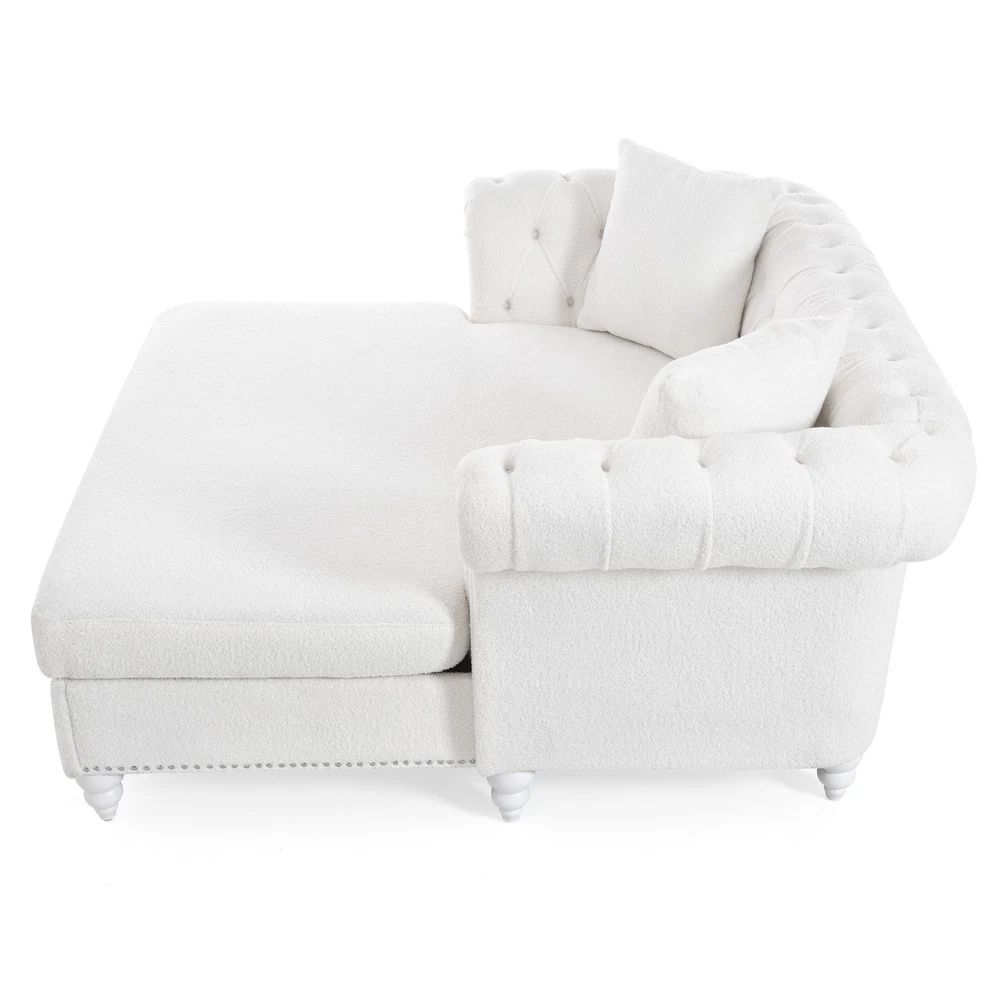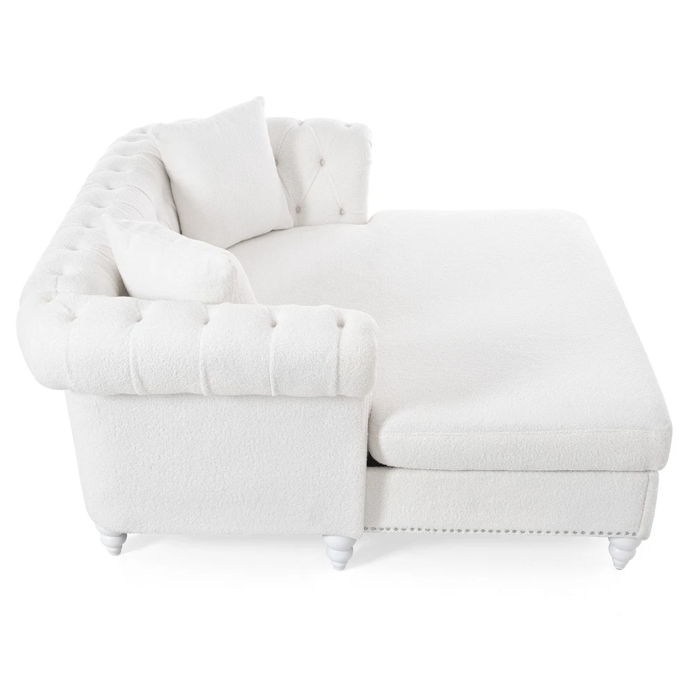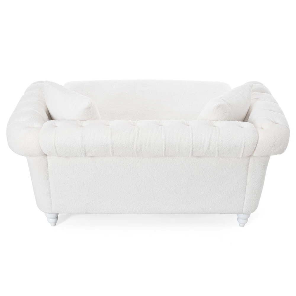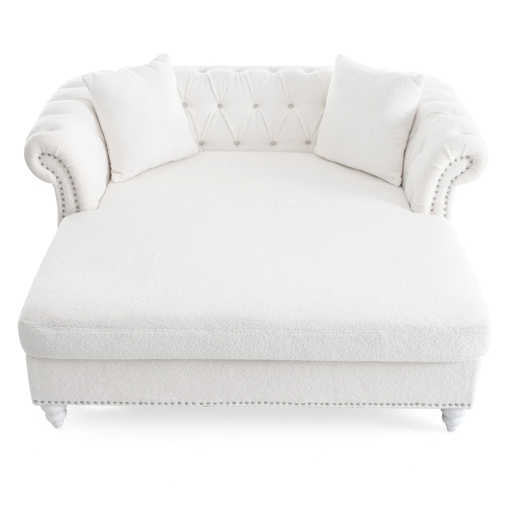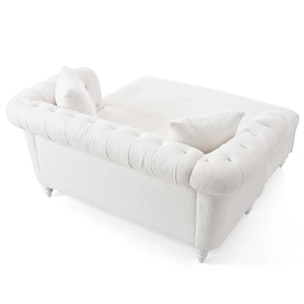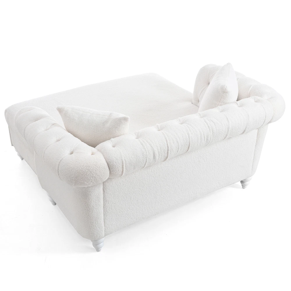 This loveseat is a dream—super comfy with its deep cushioning and the chaise lounge is perfect for stretching out. The PU leather looks sleek and wipes clean easily, making it super low-maintenance. The sturdy birch legs add nice stability, and the tufted back gives it a stylish touch. Comes with two cozy pillows, great for relaxing after a long day. Fits perfectly in the living room without taking up too much space. Honestly such a great buy for the price!