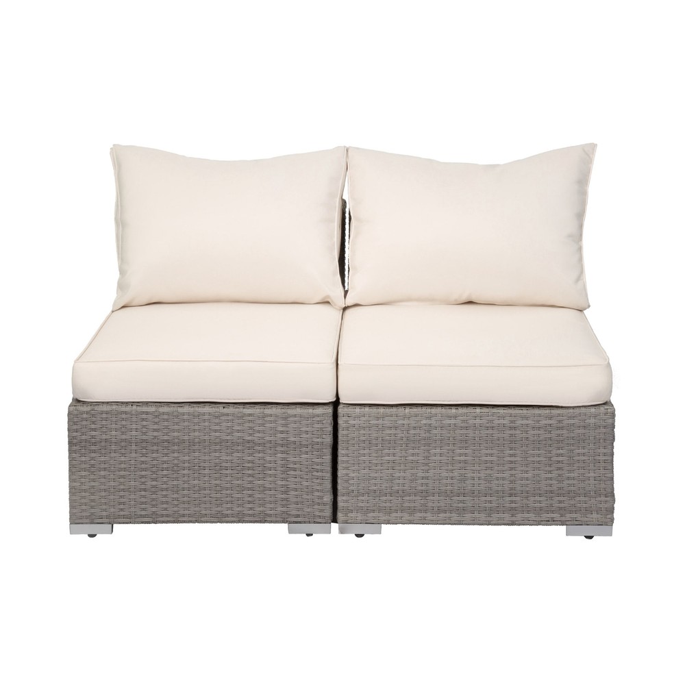 This two-piece contemporary wicker armless sofa is the ideal choice to the garden, patio, porch or balcony. The construction of high-quality wicker and sturdy rust-free steel is ready for providing the long-term enjoyment outdoors while offering the stylish look as well as the practical function. Undoubtedly the perfect addition to your indoor or outdoor area, these wicker sofas will match well with the existing furniture and compliment the deck or backyard greatly. FEATURES: (2) Armless Powder-coated Steel and hand-woven Club Chairs Sponge padded seat and back cushions for more comfort Removable cushion cover with zipper makes it convenient to clean Great for outdoor or indoor space such as patio, poolside and garden Aluminum foot pads protect rattan from scratching Easy assembly Free Shipping Over $49.99* Details Luxton 64" Outdoor Furniture Add-on Armless Chairs With Cushions Product Description: This two-piece contemporary wicker armless sofa is the ideal choice to the garden, patio, porch or balcony. The construction of high-quality wicker and sturdy rust-free steel is ready for providing the long-term enjoyment outdoors while offering the stylish look as well as the practical function. Undoubtedly the perfect addition to your indoor or outdoor area, these wicker sofas will match well with the existing furniture and compliment the deck or backyard greatly. FEATURES: (2) Armless Powder-coated Steel and hand-woven Club Chairs Sponge padded seat and back cushions for more comfort Removable cushion cover with zipper makes it convenient to clean Great for outdoor or indoor space such as patio, poolside and garden Aluminum foot pads protect rattan from scratching Easy assembly and minimal maintenance SPECIFICATION : Single Chair: 31.9" W X 25.6" H X 31.9" D Seat Cushion: 26.2" W X 3.2" H X 26.2" D Back Cushion: 9" W X 19" H X 24" L
