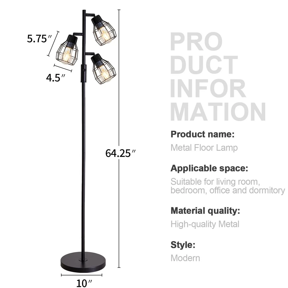 Tree Standing Lamp: The Reading light With design of the elegant, simple black metallic construction make the modern floor lamp well matched to styles of industrial, vintage and farmhouse furnitute. The special birdcage lampshade makes it ideal for multiple styles of decoration, such as minimalist, industrial and mid-century. The multi-head design cage shade lampshade brings soft warm light you need and adds decorative effect to your room Tall Lamp with 4W LED Bulb: Our Standing lamp are designed with 3 E26 lamp holders. Compatible with a variety of normal E26 LED, CFL, incandescent and halogen bulbs etc This set comes with an E26 base bulb, 4W(60W equivalent), No flicker or buzzing.This living room lamps standing is ideal and perfect gift for new house. Metal Floor Lamp: The black floor lamp is well made with premium metal, quite durable and sturdy for long-term use. The farmhouse floor lamp is specially built with a heavy, stable base and lamp pole to ensure it keep standing steadily even on the carpet. Strong holding pole, No Bending No Leaning. Sturdy Pole Heavy Base Stable & Firm. Easy to Use: The heavy floor lamp base offers high stability and prevents the pole light from wobbling or being tipped over by children or pets.There is a knob switch on the lamp body to switch on/off the light with a simple step. Super convenient to operate for all, even for elders and kids. always focuses on the needs of our customers, that's why we're constantly upgrading our products. We want to ensure that every one of our customers has a pleasant shopping experience.