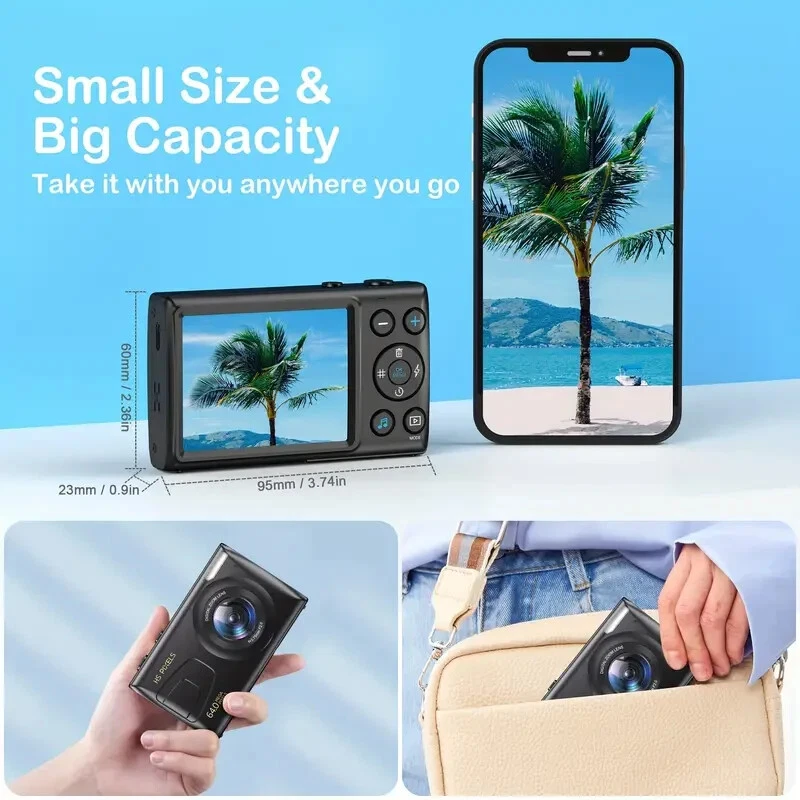64MP 4K HD Digital MP3 Camera 18X Digital Zoom Cameras For Vlogging 2.8'' LCD Rechargeable Camera Photography Professional Camera For Beginners Support For Taking Photos, Recording Videos, And Webcam. With MP3 features, eligible for music and movies.