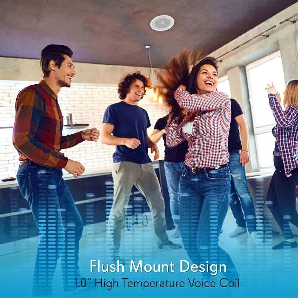 6.5” Ceiling Wall Mount Speaker - Full Range Woofer Speaker System 1.5'' Tweeter Cup Flush Design w/ 60Hz-16kHz Frequency Response 120 Watts Peak & Template for Easy Installation - Pyle PDICS6 White 6.5” SPEAKER SYSTEM: Pyle ceiling wall mount speaker is a full range woofer speaker. This unit measures 6.5” round, equipped with a 1 inch high temperature voice coil and 1.5” tweeter cup. Perfect to any room without cluttering floor space 60Hz - 16kHz FREQUENCY RESPONSE: Pyle 6.5” speaker system has a 1.5" tweeter cup and frequency response. This flush mount speaker is pack with exceptional 8 ohm impedance rating and impressive 120 watts power handling capability FLUSH MOUNT DESIGN: A flush mount design midbass stereo sound speaker for simple and easy in-wall / in-ceiling installation. The product features 1'' high temperature voice coil to produce powerful sound or quiet background music 120 WATTS PEAK: Pyle in-wall speaker system reproduce sound clearly with outstanding responsiveness. It has 89 dB that can achieve wide-ranged sound performance speakers secure as well as extending the life of the product EASY INSTALLATION: The product includes cut-out and overall templates for easy installation. The measurement for cut-out dimensions 6 3/4" in diameter x 3 1/2'' in depth while the overall dimensions measures 9'' in diameter x 3 1/2'' in depth