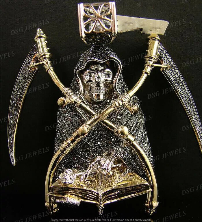 6.50Ct Black Moissanite Ghost Grim Reaper Skull Pendant 14k Yellow Gold Plated Each handmade piece is crafted with the perfect conflict-free alternative to a mined diamond. You can feel good knowing that human life was not sacrificed to make your jewelry. Our stones are cut and faceted to the highest quality standards to achieve maximum brilliance. The eye-catching sparkle of this piece is absolutely breathtaking! Our simulated diamonds and gems are guaranteed the highest quality with excellent geometrical cut as well as absolutely bright D color and VVS1 clarity that make these stones visually indistinguishable from real naturally mined diamonds that cost thousands of dollars. Customization: Want to add your personal touch to this piece? Contact us and we will create one just for you. Most customization requests include: 1) Ring Resizing 2) Redesign 3) Metal Change (Silver/10K Gold / 14K Gold /18K Gold) 4) Metal Color Change (White/Yellow/Rose/Black) 5) Color Stones (White Topaz, Pink Sapphire, etc) 6) Engraving (Name or any message - no of characters subject to size of jewelry) 7) Anything under the sun that catches your fancy, we will give it a try :) Payment: We accept payment via PayPal only. You can also pay using your credit card, via paypal, by using paypal as a guest. Payment is required within 3 days of the sale of an item. Shipping: International shipments are usually delivered within 2 to 6 weeks, depending on the time taken to clear customs. We are not responsible for any delays due to customs. Please note that all countries charge a duty on imported goods. A customs clearing charge is also imposed in many countries. We are not responsible for the amount of duty or any other related charges. Terms & Sale: We want to ensure that you are completely satisfied with your purchase. If not, then please let us know before leaving any feedback and allow us to work with you to completely resolve any issues that you might be facing. You can return the item for a full refund LESS shipping, within 14 days of item(s) receipt date. There is no restocking fee. 100% Satisfaction Guaranteed. All returns must reach us within 14 days after the item was delivered to you the item must be in the original condition and with the original tags attached. Contact Us: You can contact us by clicking on 'ask seller a question'