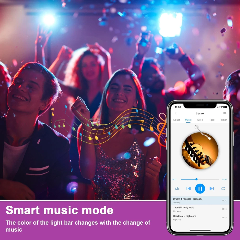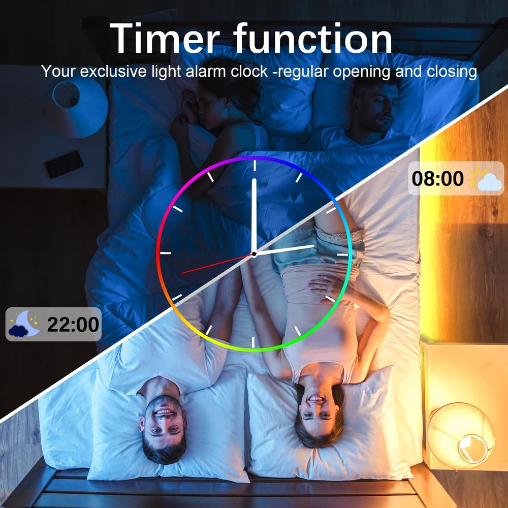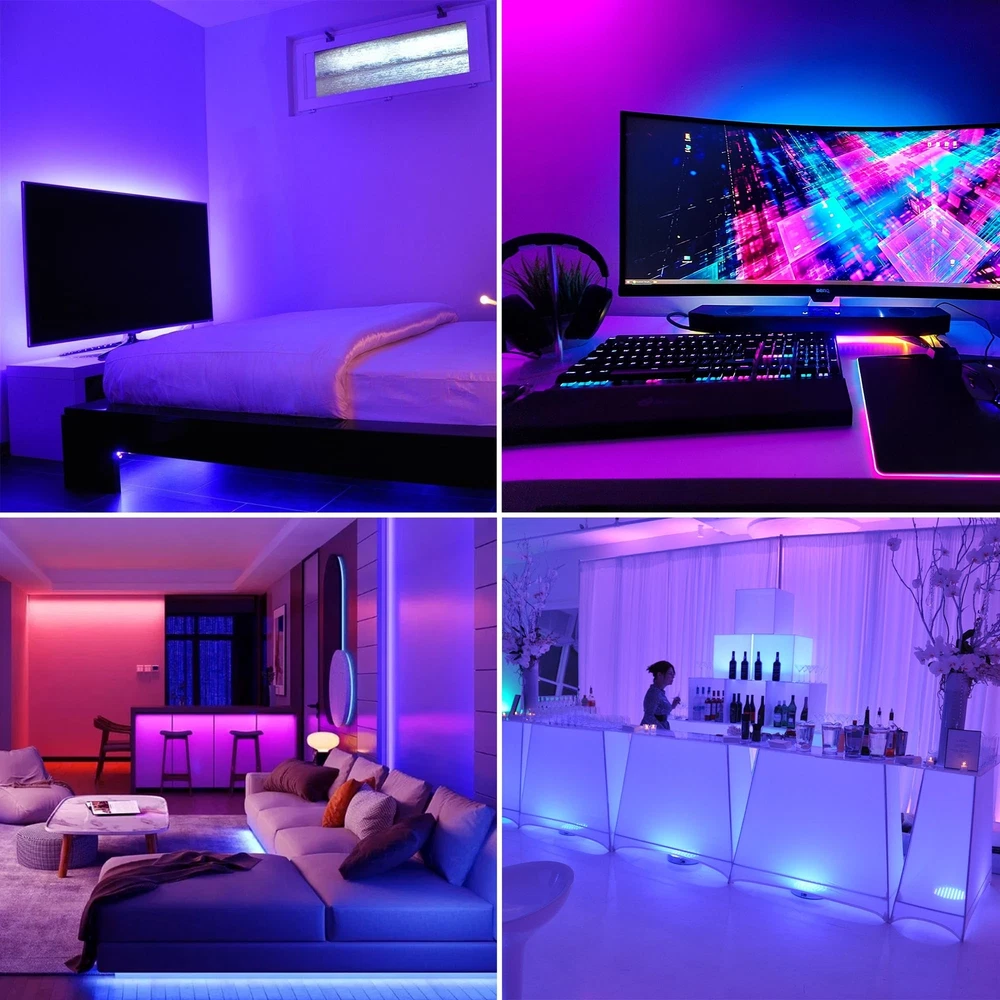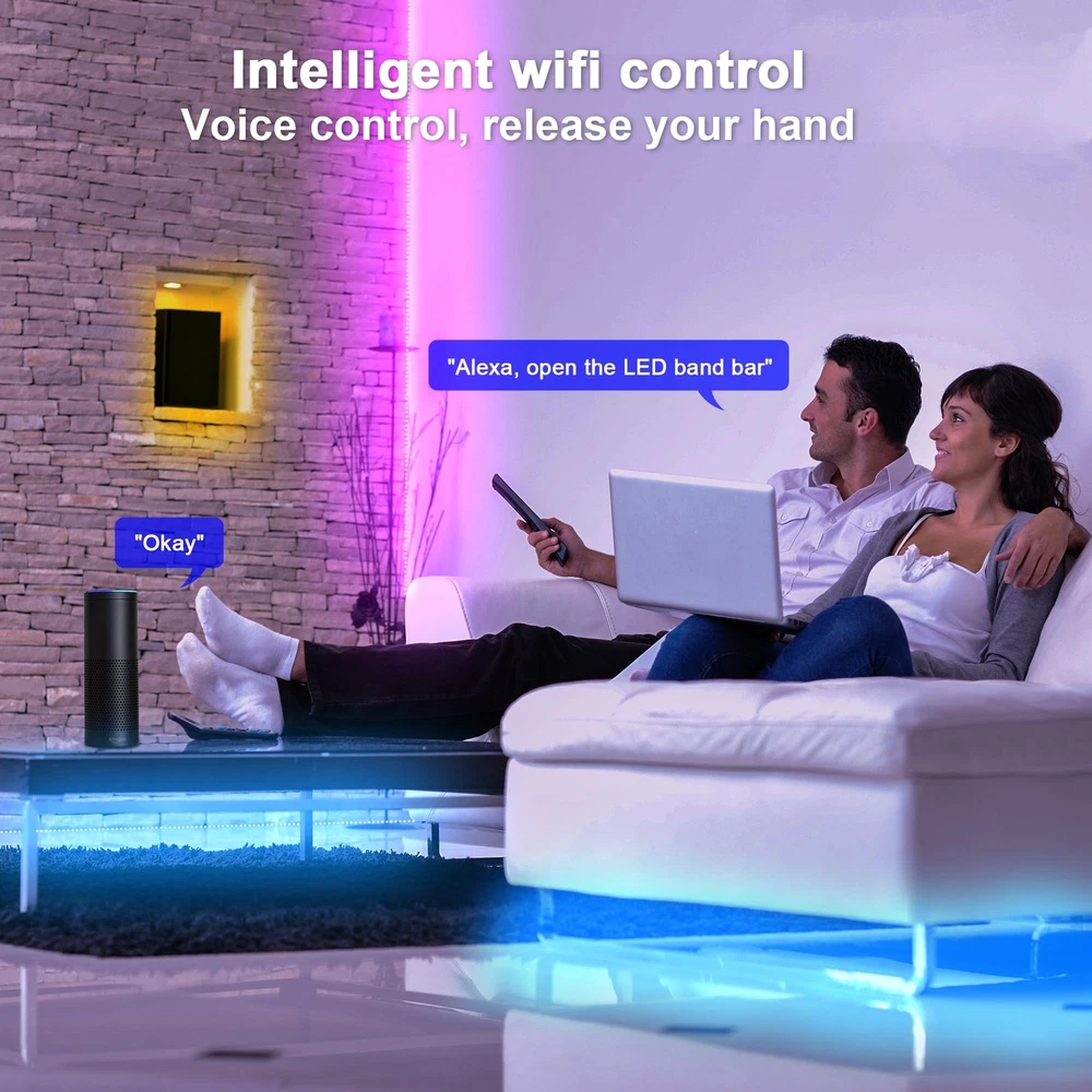 App & remote control : Download the Smart App, you can control the smart WiFi led strip lights anywhere with your mobile phone ; No matter you are working in the office or on vacation; Also you can use group function to create a group for multiple led strips, and then activate them all with one click (2.4GHz Wi-Fi only)Voice control : Our smart strip lights can Compatible with Alexa and Google home assistant; You can easily turn on/off the light, change the light color, dim the brightness with a simple voice command; No hub required easy to install and no need subscriptionTimer & schedule : You can schedule the smart led strip automatically switch on/off via your phone app; And you also can set a countdown timer; Set the wifi led lights turn on or off at a specific time; Turn all lights on the moment you back home, turn all lights off when you are away from homeLed lights sync to music : Our wifi led strip lights can change color and sync with music ; It have multi-music mode, which will change to follow the rhythm or the melody; This music light strip can even respond to your voice which make the light “dance” to the beatEasy to install and use: Our rgb led strip is easy to cut, It can be cut every 3 leds along with the cutting marks, without damaging the rest of the strip; our flexible pcb strips can be bent to different patterns, our led light strips for bedroom has a working voltage of 12V and are equipped with short circuit protection,Whether you have any questions before purchase or during use, please contact us for your service! Sync to Music: Have a built-in microphone, the led light strip Change colors with the ambient sound, the lights flash along with your music beats and shows how lights changing with the rhythm . The lights for room can change color and sync with the rhythm of any sound and music.You can decorate your game room, bar bar, personal bedroom, under the stairs, etc. with smart WiFi strips! Diy Colors combinations& Length: You can scan the manual and download the exclusive Smart Control APP. 16 million colors with brightness adjustable options/Show different color patterns with the weather/Timing and schedule mode.You can schedule the smart strip light to turn on/off automatically through the mobile app; you can also set a countdown timer; set the wifi LED light to turn on or off at a specific time; turn on all the lights when you are home and turn off all the lights when you are out and about. Voice & Smartphone Control:The smart led strip lights is no longer needs to be controlled by hand. It works with Alexa echo and Google assistant, you can control the functions of this led strip lights through voice, which must be controlled by remote control before. Besides, you can turn your led lights on and off, adjust color and brightness wherever you are. [Not support 5g wifi][Voice devices are not included] Easy Installation: Surface should be clean dust-free and dry possible before installation. Industry-Leading adhesives, which can solve the problem of falling light strips. Follow instructions on manual and you can finish in minutes. If you have any problems with the settling process, you can consult the manual for guidance or contact us to take care of it for you! 100% Satisfaction Service and Warranty : Our professional and warm service team are always ready to provide 100% Satisfaction Service with 24 hours quick response. provides 1 year standard warranty for the product.