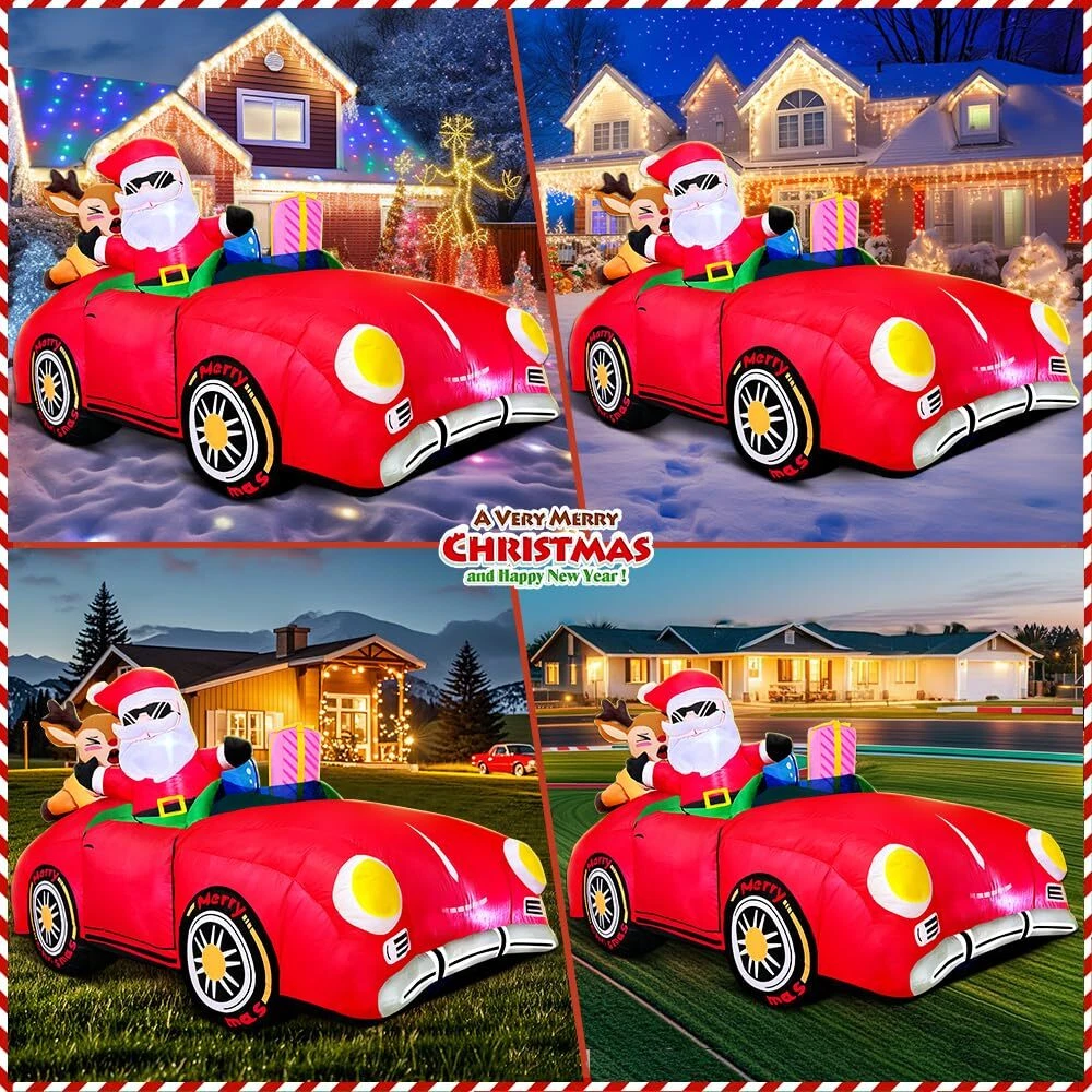 2024 NEW 6.5FT Giant Christmas Inflatables red car to celebrate Christmas.Build-in LED Lights,the super bright colored LED light will illuminate your yard and easily attract the guests, friends, and ' attention so that can be the most attractive & Christmas decorations outdoor in your neighbors. Used for Christmas outdoor and indoor party decoration, it can add a strong Christmas atmosphere. Our Christmas blow up red car is equipped with an upgraded powerful inflatable fan, the inflatable Christmas yard decorations can be inflated quickly in minutes, it is efficient and fast. Don't forget to zip up the bottom zipper before inflated. There is a rechargeable plug with UL Certified adapter are very safe to use, indoor and outdoor connected to the power supply can be inflated. Christmas inflatable decoration is made of polyester fiber, waterproof and durable, not easy to fade and not easy to be poked, perfect for your yard. Updated sewing technology, product sewing tight and neat. Ensuring our outdoor Christmas decorations yard can be used in rainy and snowy days.The deflated Christmas decor is easy to and can save space very well. Christmas inflatable outdoor decorations is perfect for Christmas decor indoors. Christmas inflatables outdoor decorations are suitable for indoor, outdoor, yard, garden, family, party, stage, Christmas Eve activities.Which can attract everyone's attention and can make everyone enjoy a happy Christmas together. Welcome to , where you can enjoy the best shopping experience and service. We have many styles for you to choose from, and wish you a happy shopping. We have Christmas tree, Santa Claus, gingerbread man, snowman and other styles for you to choose from which will brighten up your yard, as well as your holiday!