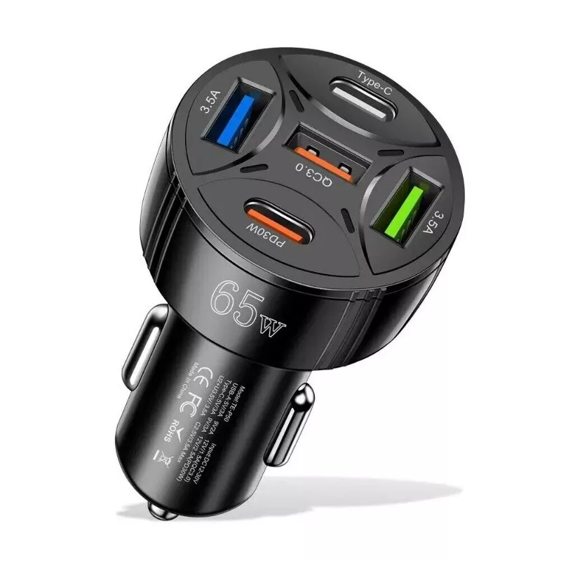 Description 65W USB Car Charger Fast Charging 5 Ports PD Type C Car Phone Charger Adapters For iPhone 15 Xiaomi Samsung Quick Charger In Car 1. Intelligent parallel connection, charging acceleration, built-in intelligent upgrade chip, trickle charging, charging speed of 30%. 2. With a high power of 65W, it can quickly charge five devices without damaging them. 3. Multiple protection with built-in intelligent chips to ensure safe device charging. 4. Overvoltage protection/overheating protection/overcurrent protection/battery cell protection/temperature protection/overcharge protection/overload protection/short circuit protection.