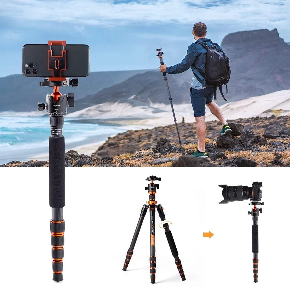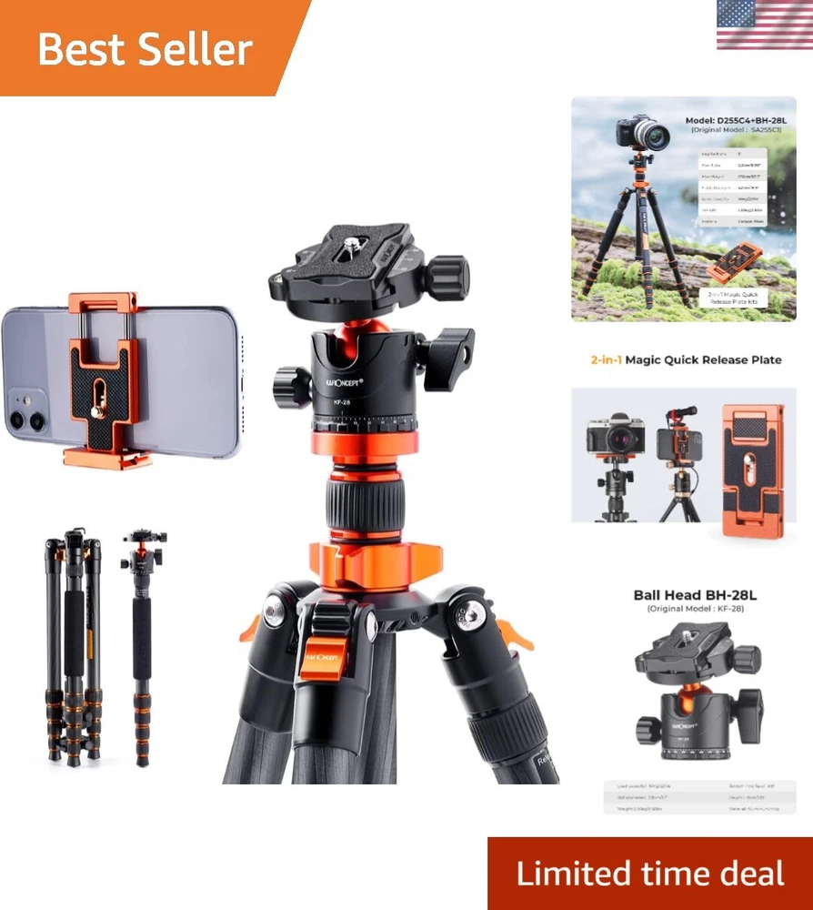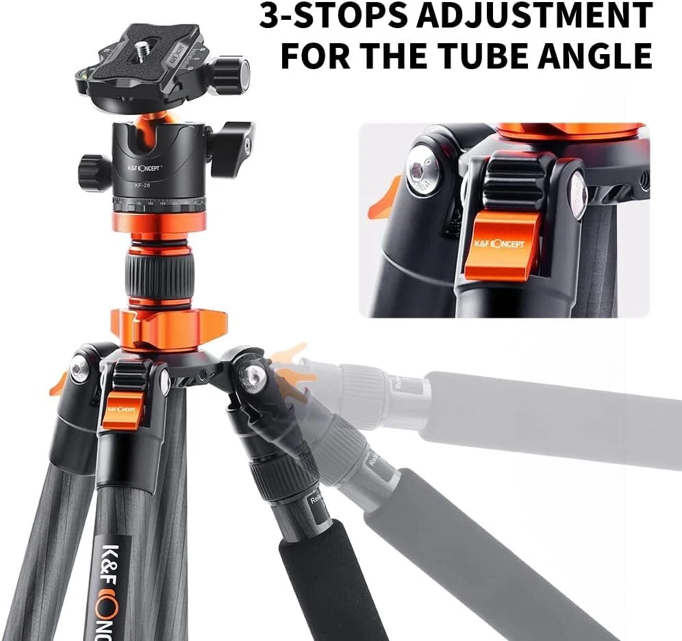 68" Carbon Fiber Camera Tripod,Compact Tripods with Metal Ball Head,Quick Release Plate,Detachable Monopod 10KG Load for DSLR Cell TripodsSA255C1 -28L 【Lightweight & Portable】Tripod tube made of quality carbon fiber,weighs only ,measures " long when folded,super lightweight and compact with loading capacity up to / 10kg,making it ideal for indoor and outdoor photography. 【Convenient & Flexible】25mm tube diameter, 5-section legs with spiral type locking knob allows you to adjust the working height from "to 68" in seconds; Tripod legs can be adjusted in three levels of opening angle to stabilize on varying grounds and incline levels. 【Detachable Monopod】This tripod can be quickly disassembled with the central axis screw and transform into a monopod, providing an alternative way of shooting with ease. 【360°Panorama Ball Head】The specially designed 28mm ball-head can rotate 360° and get free angles, allowing you to get the perfect shot and amazing panorama every time. 【High Compatibility】The quick release 1/4" screw is suitable for most cameras, DSLR camera, projector and telescope, etc; Your can be connected via a extra mount as well.