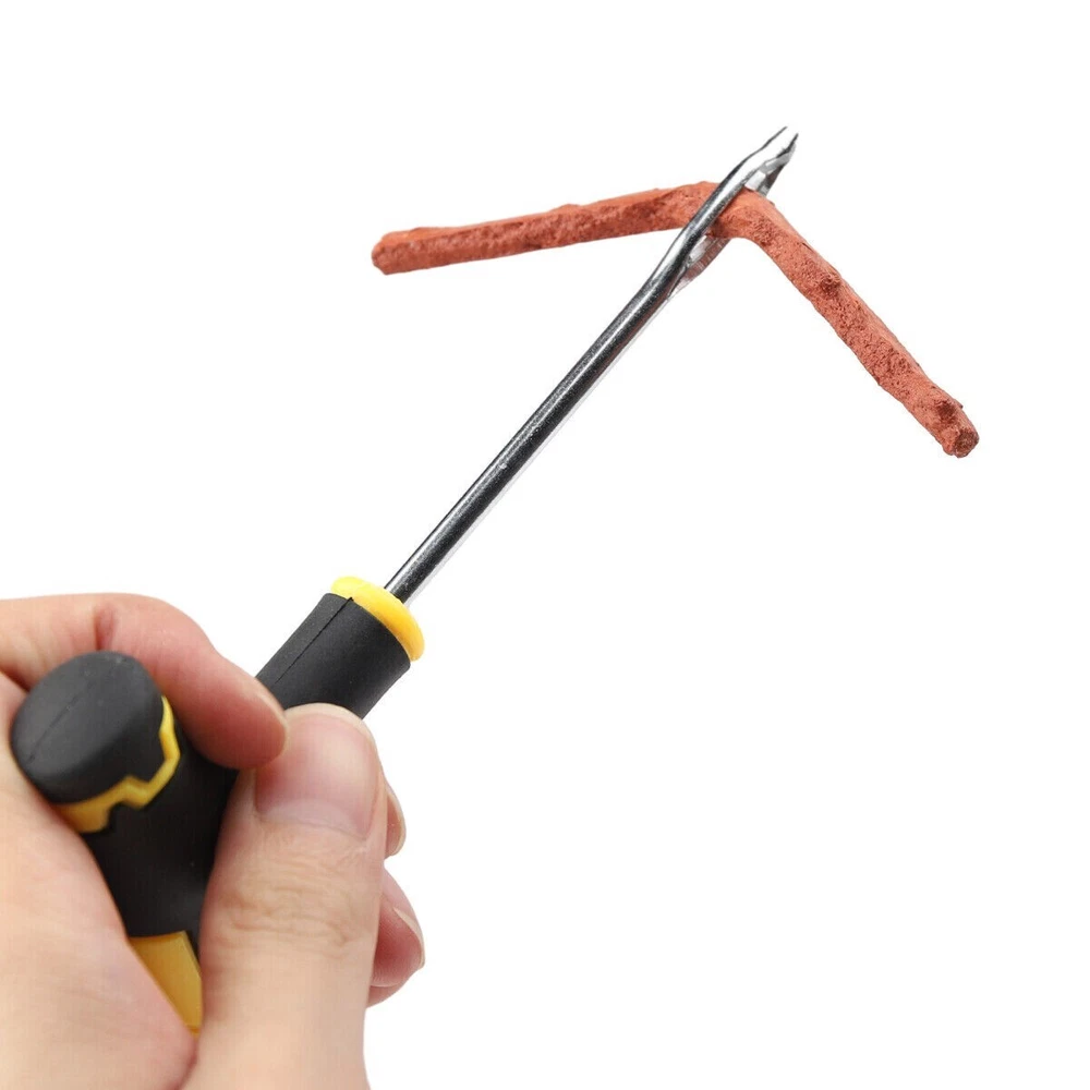 68pc Tire Repair Kit DIY Flat Tire Repair Car Truck Motorcycle Home Plug Patch Item Description 68PCS Tyre Repair Kits Material: ABS+Steel+ Vulcanized Rubber Color: Brown+Yellow+Black Size: As Picture Show Package Include: 1X Rasper Tool 1X Needle Reamer Tool 1X Rubber Solution 65X Tyre Bar Features: 1. With high-level upgrade glue bar - the heavy brown glue bar (65pcs) can provide excellent security sealing. It is stronger and better than the cheap string in the budget kit. Every aspect of our tire plug kit is designed very strongly. 2. It adopts a universal flat tire repair kit - cars, motorcycles, ATV, tractors, grass cutters, RVs, off-road bicycles, trailers, SUVs, trucks and spare tire repair kits. With 65 Superior Brown tire plugs, make it the best sub -tire repair kit. 3. The product adopts high- quality professional tools- our tire burst maintenance kit includes a pair of strong high-quality tools. This is a major upgrade of the cheap tools in other tire plug repair packs. 4. With T-shaped handle tools that conform to ergonomic design-tools suitable for this job can easily repair the perforation of internal tireless tires in a few minutes. Our portable tire repair kit includes a color description that is easy to understand and easy to follow.