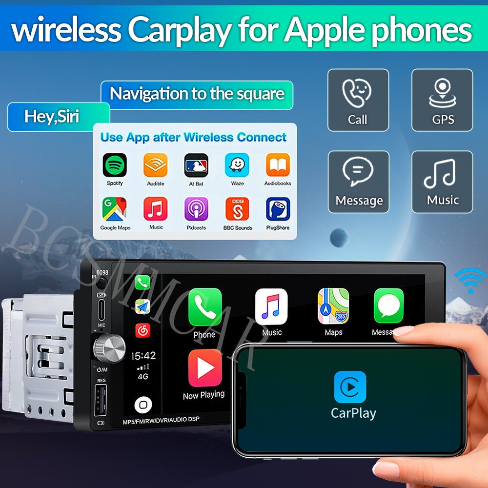 6.9in Stereo Car MP5 Player with BT, Mirror Link, Apple Carplay & Android Auto