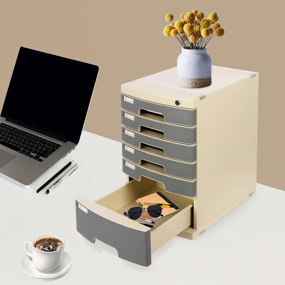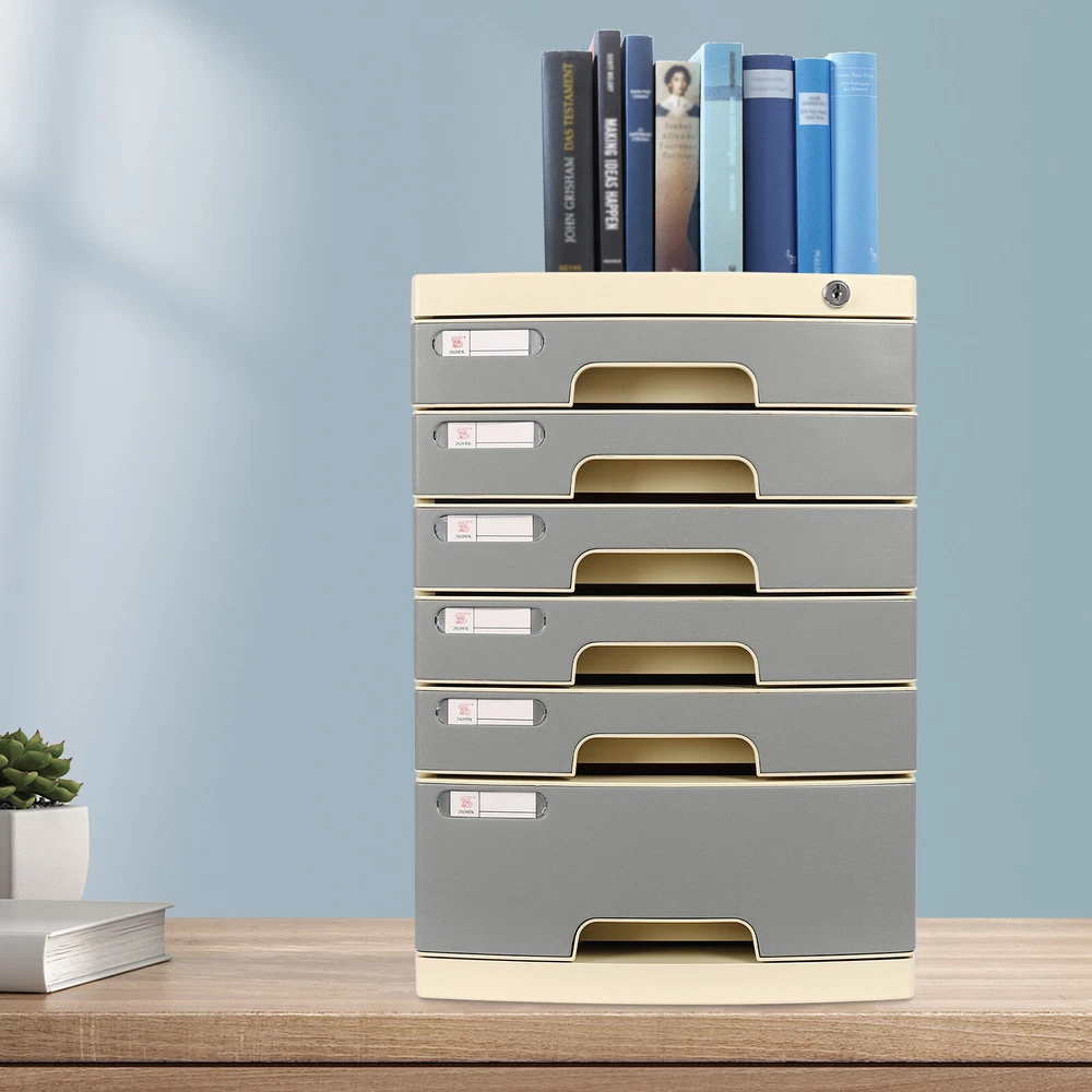 Application This product is ideal for the study, office, living room, bedroom, dormitory, school, and other places. It can be used to store documents, pamphlets, folders staplers, and other items such as cell phones. Specifications Color: Grey Style: Modern Shape: Rectangular Material: Plastic Assembly Required: No Mount Type: Tabletop Thickness: 2mm/0.08in Number of Drawers: 6 Each Drawer Load-bearing Capacity: About 1.5-1.8kg/3.31-3.97lbs Tier Spacing: 10cm/3.94in; 5cm/1.97in Product Size: 29.5*39.4*43cm/11.6*15.5*17in Package Size: 45*31*40cm/17.72*12.2*15.75in Gross Weight: 4.3kg/9.48lbs Net Weight: 4kg/8.82lbs Package Included 1* Drawer Organizer 2* Keys Desktop Storage Box 6 Drawers Organizer Lockable Desk File Organizer Home Office Description This drawer organizer adopts 6 drawer design. It is designed to make full use of space and achieves fine classification storage so that it will make your life and work more orderly. A modern appearance can show a sophisticated sense of style. You can put labels in label holders to help you quickly find what you need, so it will become your ideal storage assistant. Key Features High-quality Material: Premium plastic makes this product wear-resistant and not easy to deform, ensuring high durability. Storage Assistant : The 6 drawers can store files, pamphlets, folders, staplers, and other small items(not included) to keep your desktop tidy. In addition, the spacious top can also hold small potted plants, cups, decorations, etc. (not included), making your room more organized. Privacy Protection: The product comes with two keys that allow you to lock your drawer organizer so you can have your own private storage space. Stable Structure : Thickened materials and rectangular structure provide it with stable construction, making it not easily shaken and stand stably on the tabletop. Elegant Appearance: The simple gray color, rectangular structure and smooth lines give it a contemporary style that adds beauty and modern elements to your room. Thoughtful Design : The drawers help protect your documents or belongings from dust or moisture, thus maximizing the preservation of your items. Ready to Use : You can use this product directly after receiving it without tedious and complicated assembly, saving you time and labor. Simple Cleaning: Thanks to its smooth surface and simple structure, you can easily clean it with a rag (not included). Ideal Gift: With a delicate outlook and practical storage function, it is a wonderful housewarming or festival gift for your families, friends, or colleagues. Details Label Frames: They offer great convenience for categorizing items for storage and finding what you need quickly. Smooth Edges: They can effectively protect your hands from being scratched when using or cleaning this product. Recessed Handle: The recessed handle is more durable, can add aesthetic appeal, and allows you to push and pull the drawer more easily. Application This product is ideal for the study, office, living room, bedroom, dormitory, school, and other places. It can be used to store documents, pamphlets, folders staplers, and other items such as cell phones. Specifications Color: Grey Style: Modern Shape: Rectangular Material: Plastic Assembly Required: No Mount Type: Tabletop Thickness: 2mm/0.08in Number of Drawers: 6 Each Drawer Load-bearing Capacity: About 1.5-1.8kg/3.31-3.97lbs Tier Spacing: 10cm/3.94in; 5cm/1.97in Product Size: 29.5*39.4*43cm/11.6*15.5*17in Package Size: 45*31*40cm/17.72*12.2*15.75in Gross Weight: 4.3kg/9.48lbs Net Weight: 4kg/8.82lbs Package Included 1* Drawer Organizer 2* Keys Notes Please double-check the size before ordering. Please note that this product does not include other items shown in the picture. Please allow the slight color difference caused by the shooting light and 1-3cm error due to manual measurement, and make sure you do not mind before you order. On Jun 8, 2025 at 21:47:16 PDT, seller added the following information: