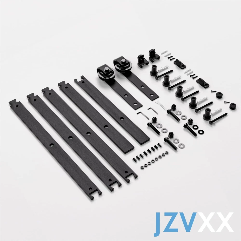 Basic Info: Barn door hardware kit maximum hold barn door for 265 lbs, Fit for door panel thickness from 1.375" to 1.75", Fit for door panel width up to 36"(door not included). Strong and Durable: Barn door track are made of high standard carbon steel with black powder coating, This greatly increases the robustness of the barn door track and makes it water, dust and rust resistant, all attributes that allow the entire barn door hardware kit to maintain long-term stable operation. Smooth and Quiet: Sliding door kit is based on the POM made wheels(2 bearings inside wheel), which allows the barn door system to slide more silky smoothly and quietly and does not easily cause wear and tear on the track. Less Space Ocuupy: Compared with normal sliding doors, barn doors and hardware included are more space-saving, the space behind your door is not bound, you can easily stack items behind the door, it is your space becomes more neat, this is the biggest reason why we choose barn door system. What Included: 5* barn door track(combine to 6ft), 2* barn door rollers, 2* door stoppers, 2* anti-jump pads, 1* floor guide, 1* maunal. Incase you get any confusion on installation or missing parts ,kindly contact us via amazon ,we may get back to you in 24 hours. "ONLY BARN DOOR HARDWARE KIT FOR SALE, BARN DOORS ARE NOT FOR SALE."