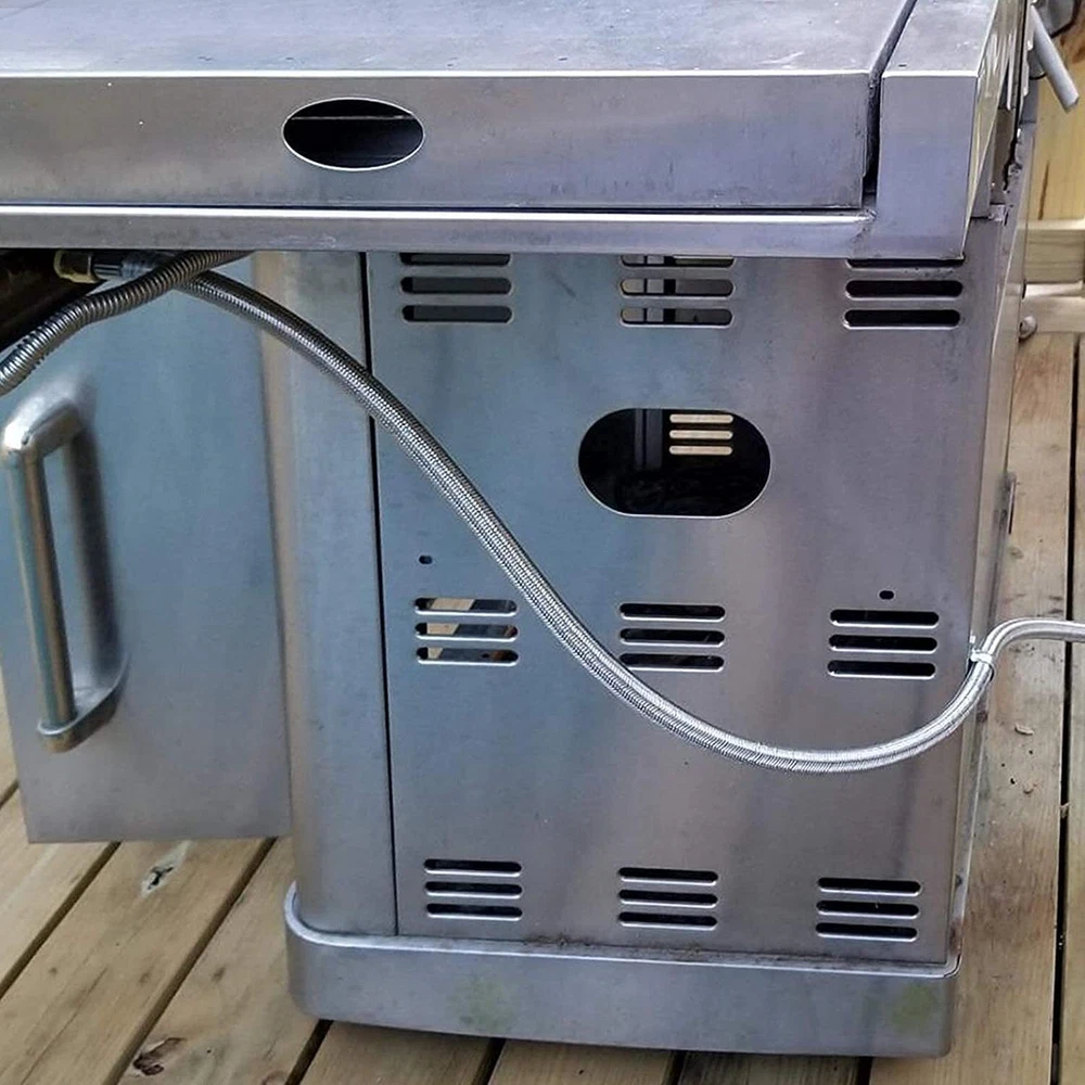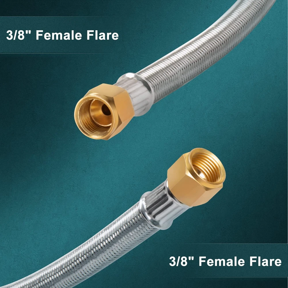 Versatile Converter : Just attach 3/8" male flare fittings at both ends to convert them into any fitting form you require, allowing you to connect multiple devices such as a gas grill, propane burner, and so on Extension Hose : The 6-foot length is enough to maintain a safe distance between your propane appliance and the fuel tank. Also, you can use your grill more flexibly Premium Solid Brass : Corrosion-resistant brass fittings provide a good seal against leaking hose ends. Ensures your safety in use Sturdy Stainless Braided : Braided hose resists damage from friction and animal bites, You can rest assured using the lp hose outdoor Standard Connector : 3/8" Female Flare x 3/8" Female Flare (I.D.: 9/16"). Ensures it can fit your fittings