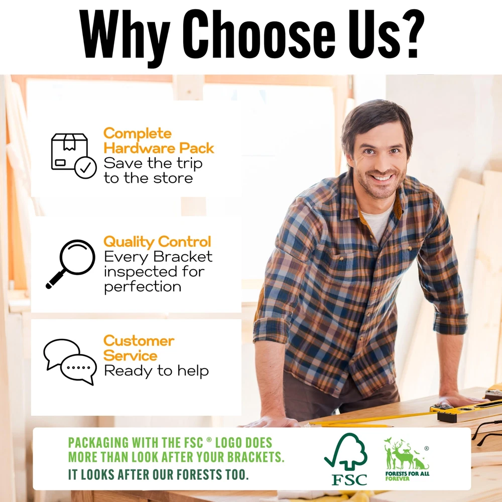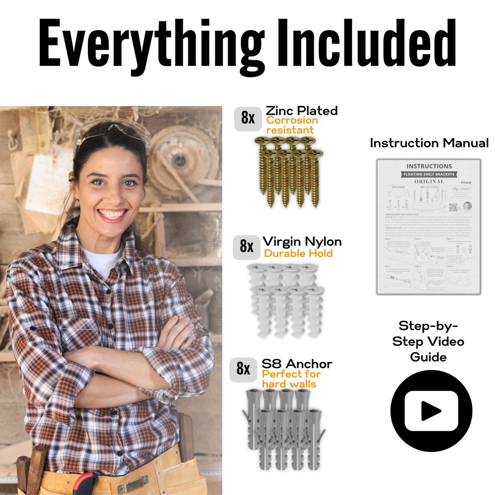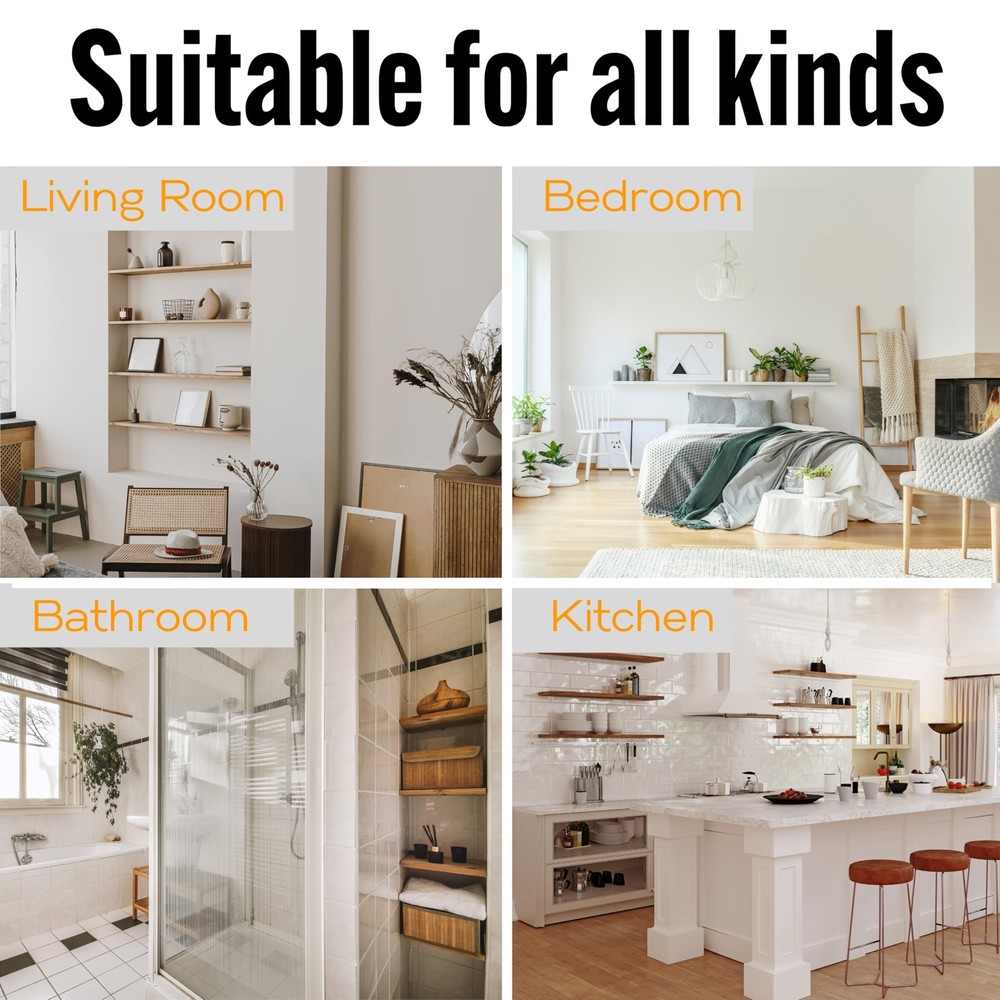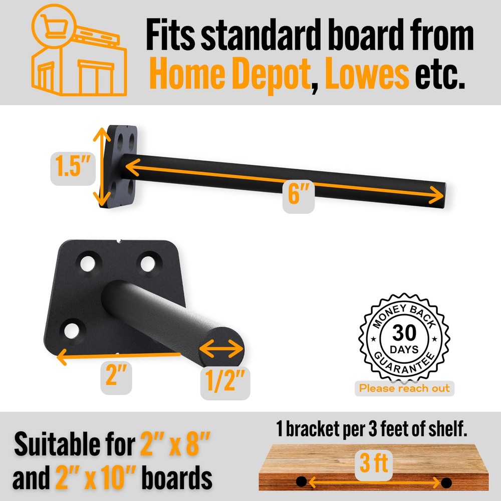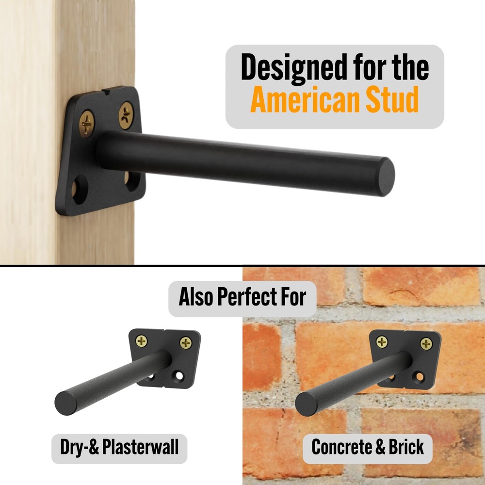 Sturdy & Reliable: Our 6-inch heavy duty floating shelf brackets, made from carbon steel, ensure durability and support up to 100 lbs. Ideal for kitchen shelves, fireplace mantels, and office storage. Seamless Installation: These hidden shelf brackets come with detailed instructions and hardware for easy installation. Ideal for kitchen shelves, fireplace mantels, and other floating shelf hardware needs. Versatile Use: Compatible with standard 2x4 studs, drywall, brick, and concrete, these floating shelf brackets offer reliable support for various applications, including bookshelves and bar wall shelves. Quality Craftsmanship: Each floating mantel bracket undergoes rigorous quality checks to ensure no defects, perfect alignment, and rust resistance, making them ideal for kitchen and bathroom shelves. Elegant Design: Invisible wall mount brackets offer a clean, minimalist look, enhancing home and office decor while providing strong support for floating shelves and hidden shelf brackets.