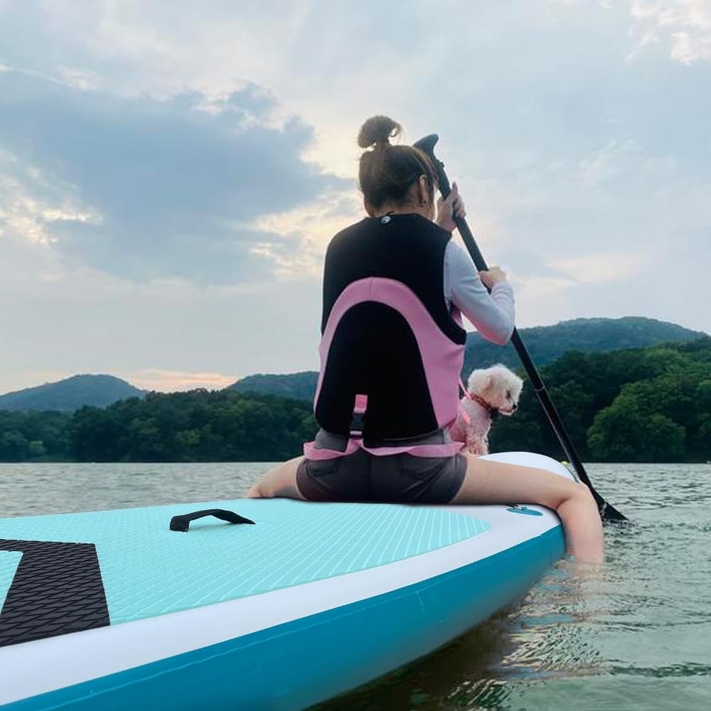This inflatable paddle board is a game-changer! The lightweight yet ultra-stable 6" thick design makes it perfect for yoga, fishing, or just cruising. I love the grippy deck and triple-fin setup—it feels secure even as a beginner. The included premium accessories and carry bag are such a nice bonus! Super easy to inflate and surprisingly rigid on the water. Handles my weight (close to the max limit) with no issues. The bright color looks awesome, and it packs down small for storage. Worth every penny for summer fun!