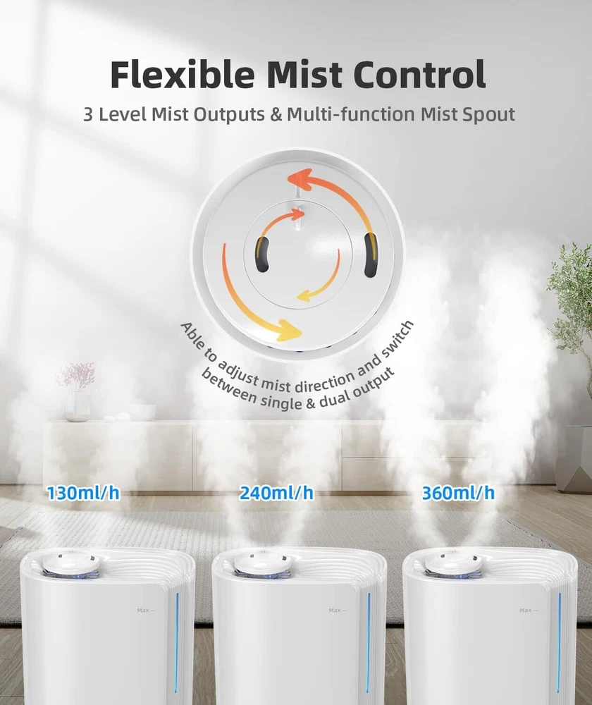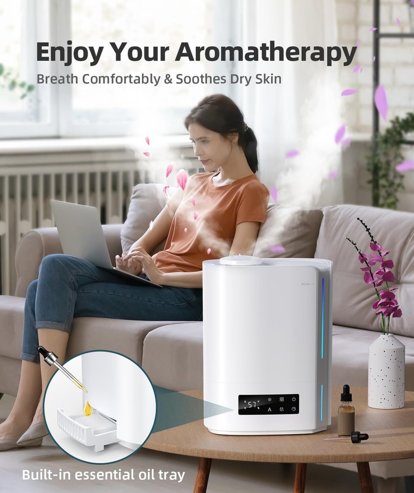 Product Description 6L Humidifiers for Bedroom Large Room & Essential Oil Diffuser, Ultrasonic Top Fill Cool Mist Humidifiers for Baby, Plants, Nursery Last up to 60 Hours, Smart Humidistat Control, Quiet, White POWERFUL HUMIDIFICATION, PERFECT FOR BEDROOM & BABY ROOM: Our ultrasonic humidifier has a 6L (1.6 gallon) large tank that works great in large rooms up to 500 sq feet. It allows a long lasting humidification for up to 60 hours. DIFFUSER & HUMIDIFIER 2 IN 1: Add your favourite essential oils to the built-in aromatherapy tray, the cool mist humidifier can mix your favourite aroma with the moist air and fill your room with relaxing aroma. AUTOMATICALLY CONTROL THE HUMIDITY LEVEL: Our humidifiers for bedroom is designed with a intelligent humidistat which helps to maintain the pre-set humidity level and allows you to check the real time humidity level. Just setup your preferred humidity level and let our humidifier do the rest. CONVENIENT TOP FILL DESIGN: Easily clean the water tank under running water with a detachable tank. It’s never been easier to maintain water in the tank. Just open the lid and directly add water into the working humidifier. WHISPER-QUIET & SAFE: Designed with a quiet sleep mode, our humidifier can work in low noise to protect your undisturbed good sleep. It would automatically shut off when water runs out. Safe for you and your whole family. About Us We are a reputable seller with many years of experience selling on eBay. Our goal is to provide high-quality products and excellent customer service. Shipping Items will be shipped within 1-3 business days when we received payment. (Orders are not processed on weekends & holidays) Tracking information will be sent once item is shipped. Delivery time depends on destination and other factors Item is shipped to ebay address. Leaving correct address can minimize delay. For international shipping and shipping to Guam, Hawaii and Alaska, Please contact us before placing the order. International buyers please note: Import duties, taxes and charges are not included in the item price or shipping charges. These charges are buyer’s responsibility. We will try our best to reduce the risk of the custom duties. Local pick-up is unavailable at the moment. Contact Us We reply any email messages within 1 business / working days(off-duty at weekend). If you do not get a response from us, then please check your junk or spam mailbox. Our Business hours: Mon-Fri 9:00-18:00, UTC/GMT +8 hours. Please contact us either by clicking "contact seller" in the "purchase history" section or simply click "ask a question" at the bottom of this page. If you are unsatisfied with our item or service, please contact us before leaving any feedback. We are committed to resolve all issues in a friendly and satisfactory manner.