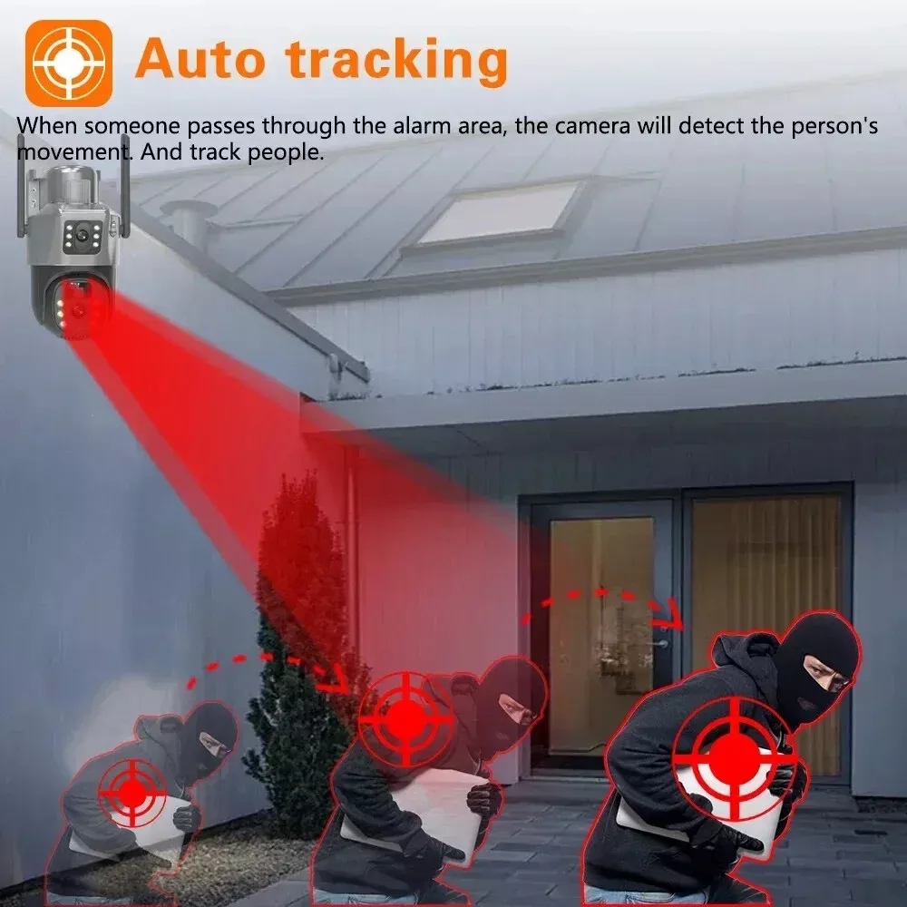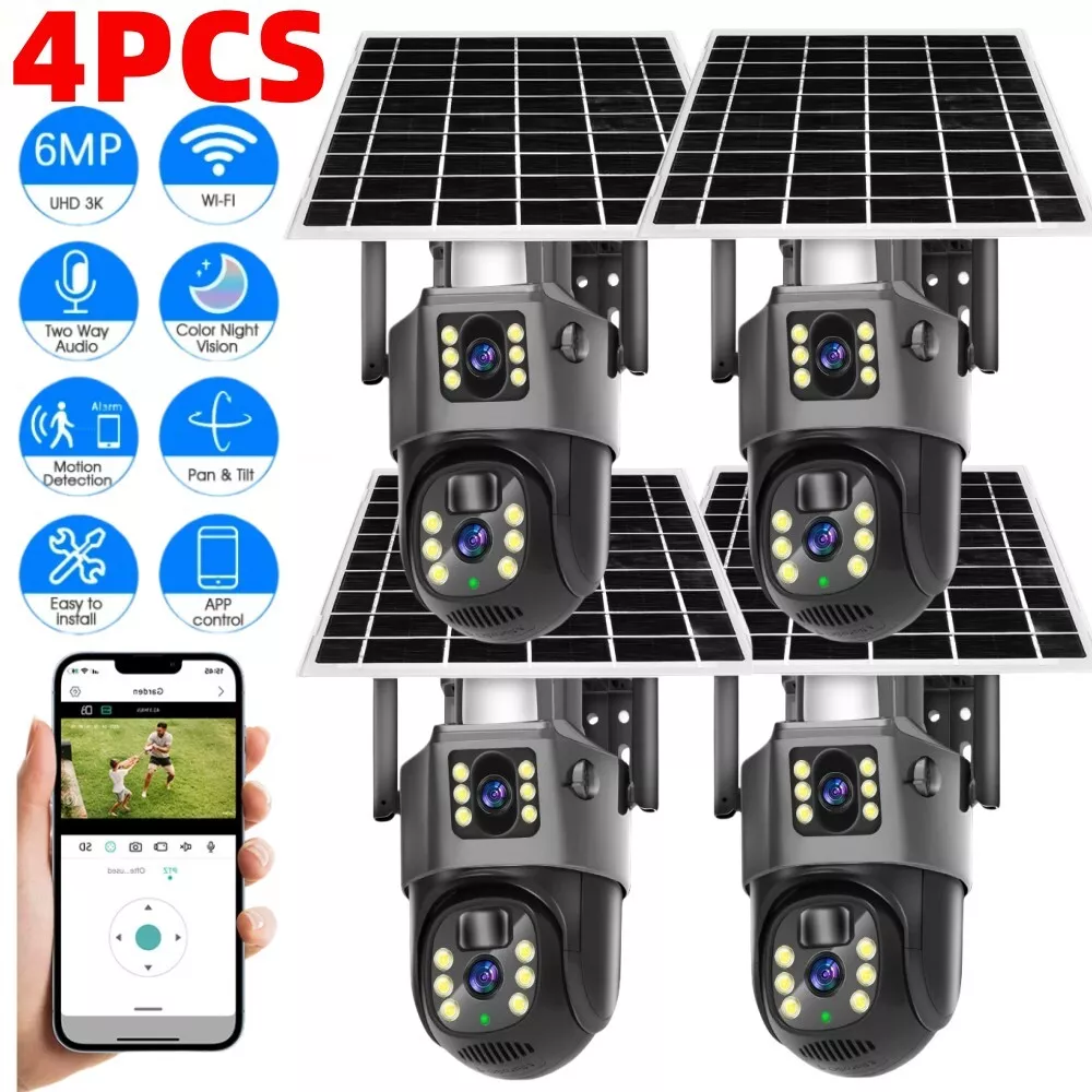 Specification: ● Resolution: 4MP; ● iode: 12 x IR white light; ● Night vision: 30m; ● Head: 355° horizontal rotation, 90° vertical rotation; ● PIR infrared sensor: 10m (32ft) 100 degree detection range; ● Battery standby: up to 365 days; ● IP66 outdoor battery camera; ● Cloud storage: supported; requires in-app subscription and payment; ● Local Storage: Supports micro SD card up to 128G (not built-in); ● Multi-viewing: supports sharing to up to 4 families; ● Input/Output: Built-in microphone and speaker; ● Apps: Eseecloud app; please search for this keyword on Google Play or iOS APP Store to download the app; ● Operating time: 10 months based on 3 events triggered per day; ● Operating temperature: -20°C to 60°C (4°F to 140°F); Battery powered+solar charging panel: Built in recyclable rechargeable battery, ultra-low power system optimization, energy saving, durable endurance, and long term standby with solar charging panel Picture in Picture , 8X Digital Zoom you can switch from 1X to 8X digital zoom instantly; it can fast zoom in or zoom out without lag; watch far and near images Simultaneously through Picture in Picture,don't miss a detail. Two-Way Audio Build in speaker and microphone,support clear two way voice speaking AI Auto Tracking When someone passes through the alarm area, the camera will detect the person's movement. And track people. PIR Human Detection When it is found that someone breaks into the monitoring area, the camera will immediately take a picture and push alarm to App. Full Color Night Vision When the white LED light is on, the camera will display colorful vision at night, and there are three night modes for you to choose. PTZ Control by APP Rotates 355° Horizontally and 90° Vertically.You can control it in the APP directly whenever you want and wherever you are. IP66 Waterproof / Dustproof The camera is equipped with IP66 case , which is waterproof, sun-proof and dust-proof. It is suitable for any environment.
