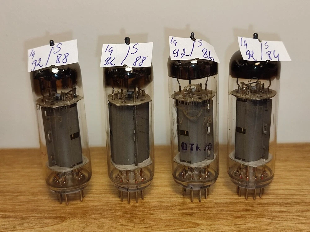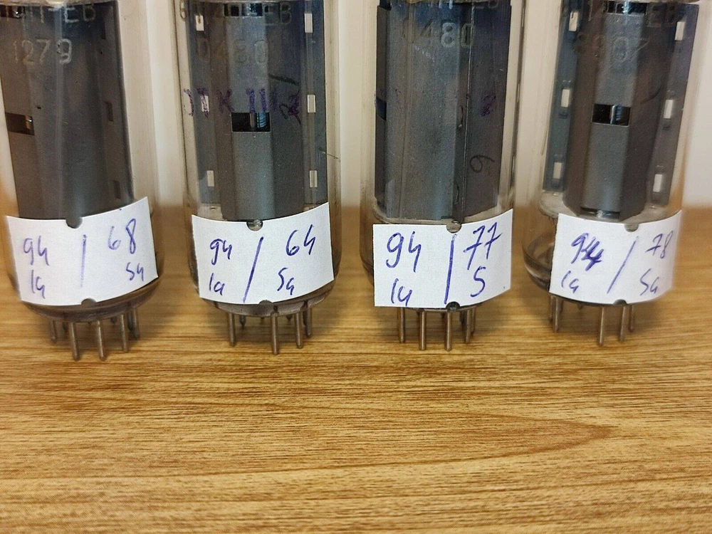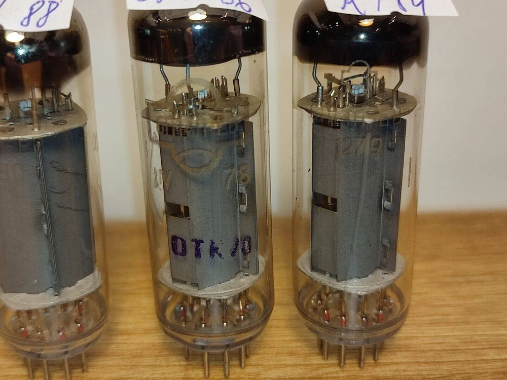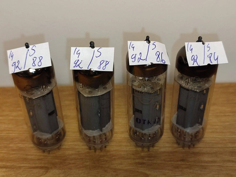6P14P-EV = EL84 6BQ5 Tubes Nos Matched Quad Soviet Valves Item name : MATCHED QUAD OF 6P14P-EV REFLECTOR Quantity in current lot: 4 x 6P14P-EV Dates are not matched Item type: SOVIET MATCHED TUBES Item condition: New OLD STOCK, NOS, Soviet military tubes. Similar tubes: EL84, 6BQ5 Description: 6P14P-EV - a rarer and therefore more expensive version of one of the best military analogues of the Soviet tube 6P14P (6QB5) --------------------------------------------------------------------------------------------------------------------------------------------------- Import duties, taxes and chargers are not included in the item price or shipping charges. These charges are the buyer's responsibility. Please check with your country's customs office to determine what these additional costs will be prior to bidding buying. Combine shipping is accepted. If you need less or more items of this type, or if you need add some other items, contact us, and we will make special listing for you. Give us the list of items you need, and we'll do the rest. We have many other vacuum tubes for audio and other, ask us if you need any of them. Items are shipped from Lithuania Post (Europe Union) via expedited International tracking. Returns We guarantee you complete satisfaction with all our high quality products. If you receive an item you did not order, or if an item you ordered is received damaged or defective, we will refund you the price you paid for it or replace it with identical one. The item should come to the above address within 30 days after you received it. After 30 days we will no longer be responsible and the item won't be taken back. Item for returning must have the original tags and packing, otherwise it won't be accepted.