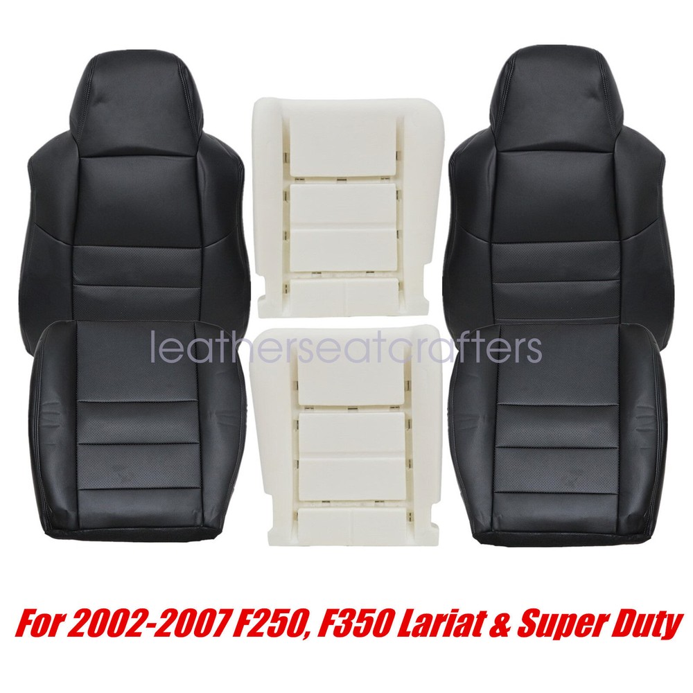 6PCS For 2002-2007 Ford F250 F350 XLT Front PERF Seat Cover & Foam Cushion Black Details Description: For 2002 2003 2004 2005 2006 2007 Ford F250 F350 F450 F550 Lariat Super Duty XLT Replacement Driver & Passenger Perforated Leather Seat Cover Black High quality & Fast Shipping & Shipped From USA Warranty: 5 Years Condition: 100% Brand New & Fast Free Shipping We can provide video installation instructions Features: Material: Microfiber Leather & Foam Color: Black w/ Perforated insert Make: Ford Model: F250 F350 F450 F550 Lariat, XL, FX4 & XLT, Regular, Super & Crew Cab Year: 2002 2003 2004 2005 2006 2007 Heated Seats: Fits Heated Seats and Non Heated Seats Power Seats: Fits Power Seats and Non Power Seats Vehicles AC Seats Compatibility: Yes, Fits AC Seats Fits Vehicles: 2002-2007 Ford F-250 Lariat, XLT with Leather, Crew-Cab, Single-Cab, 2WD, 4X4, 5.4L 6.8L Gas, 7.3L 6.0L Power Stroke Turbo Diesel 2002-2007 Ford F-350 Lariat, XLT with Leather, Crew-Cab, Single-Cab, 2WD, 4X4, 5.4L 6.8L Gas, 7.3L 6.0L Power Stroke Turbo Diesel 2002-2007 Ford F-450 Lariat, XLT with Leather, Crew-Cab, Single-Cab, 2WD, 4X4, 5.4L 6.8L Gas, 7.3L 6.0L Power Stroke Turbo Diesel 2002-2007 Ford F-550 Lariat, XLT with Leather, Crew-Cab, Single-Cab, 2WD, 4X4, 5.4L 6.8L Gas, 7.3L 6.0L Power Stroke Turbo Diesel Note: Does Not Fit Extended Cab Package Included: 1 Set Front Driver & Passenger Leather Seat Cover ( 2 x Bottom Seat Cover & 2 x Lean Back Seat Cover) 1Pcs Driver Bottom Foam Cushion 1Pcs Passenger Bottom Foam Cushion About This Item: Warranty: 5 Years Fast & Free Shipping From KY or CA If you do not know how to install, please contact us , We can provide video installation instructions Tips: This Front seat cover, built to factory specs with Quality Leather to match the Interior of your vehicle! Our product is exactly the same as your existing cover and guaranteed to fit perfectly on your seat foam Pad. Any wrinkles seen in the pictures is from being in a box and guaranteed to disappear once installed Correctly. Please note this item is a replacement, not a slip on or pull over. The boxing/skirting is vinyl sewn onto foam like . Please Note: Our Leather seat cover matches with your cover. Actual Replacement Cover. NOT A SLIP ON or PULLOVER. You will remove the old cover & then install the New Cover. Communication is the best way to solve the problem. If you have any problems after purchasing, please contact us in time, before opening return or case. Shipping policy: Payment: Returns: About us: Shipping policy: 1.Orders are usually shipped within 24 hours after your payment(except weekends & official holidays). You can log on to eBay to check your logistics tracking number. 2.Please make sure to provide us with correct,precise and detailed shipping address before purchase, and cannot change it once purchased. Payment: PayPal payment accepted only.Please purchase and pay for the item through the eBay. Returns: 1.If any item is defective upon receipt or do not work, please contact us for the condition,we will provide a solution for such cases. 2.Return is accepted within 30 days after the buyer receiving the item. About us: 1.Thanks for purchasing in our store,if you have any questions, please contact us immediately. We will provide you with the high quality service. 2.If you are satisfied with our products, please give us a positive feedback. On Dec 18, 2024 at 23:46:53 PST, seller added the following information: