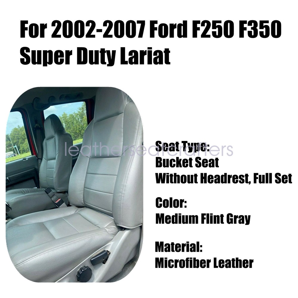 6PCS For 2002-2007 Ford F250 F350 Lariat Front Seat Cover & Foam Cushion - Gray Details For 2002 2003 2004 2005 2006 2007 Ford F250 F350 F450 F550 Lariat Super Duty XLT Replacement Driver & Passenger Seat Cover Gray Description: Type: Replacement Side: Front Driver & Passenger Material: Synthetic Leather & High Density Foam Color: Medium Flint Gray Make: Ford Model: F250 F350 F450 F550 Lariat, XL, FX4 & XLT, Regular, Super & Crew Cab Year: 2002 2003 2004 2005 2006 2007 Warranty: 5 Years Fitment: 200 2 -2007 Ford F-250 Lariat, XLT with Leather, Crew-Cab, Single-Cab, 2WD, 4X4, 5.4L 6.8L Gas, 7.3L 6.0L Power Stroke Turbo Diesel 200 2 -2007 Ford F-350 Lariat, XLT with Leather, Crew-Cab, Single-Cab, 2WD, 4X4, 5.4L 6.8L Gas, 7.3L 6.0L Power Stroke Turbo Diesel 200 2 -2007 Ford F-450 Lariat, XLT with Leather, Crew-Cab, Single-Cab, 2WD, 4X4, 5.4L 6.8L Gas, 7.3L 6.0L Power Stroke Turbo Diesel 200 2 -2007 Ford F-550 Lariat, XLT with Leather, Crew-Cab, Single-Cab, 2WD, 4X4, 5.4L 6.8L Gas, 7.3L 6.0L Power Stroke Turbo Diesel Note: Does Not Fit Extended Cab Heated Seats: Fits Heated Seats and Non Heated Seats Power Seats: Fits Power Seats and Non Power Seats Vehicles Seat Cover's Attached Padding: ½ Inch attached foam padding Package Including: 1 Set Front Driver & Passenger Leather Seat Cover ( 2 x Bottom Seat Cover & 2 x Lean Back Seat Cover) 1Pcs Driver Bottom Foam Cushion 1Pcs Passenger Bottom Foam Cushion If you do not know how to install, please contact us , We can provide video installation instructions Tips: This Driver & Passenger seat cover, built to factory specs with Quality Leather to match the Interior of your vehicle! Our product is exactly the same as your existing cover and guaranteed to fit perfectly on your seat foam Pad. Any wrinkles seen in the pictures is from being in a box and guaranteed to disappear once installed Correctly. Please note this item is a replacement, not a slip on or pull over. Please Note: Actual Replacement Cover. NOT A SLIP ON or PULLOVER. You will remove the old cover & then install the New Cover. Communication is the best way to solve the problem. If you have any problems after purchasing, please contact us in time, before opening return or case. Shipping policy: Payment: Returns: About us: Shipping policy: 1.Orders are usually shipped within 24 hours after your payment(except weekends & official holidays). You can log on to eBay to check your logistics tracking number. 2.Please make sure to provide us with correct,precise and detailed shipping address before purchase, and cannot change it once purchased. Payment: PayPal payment accepted only.Please purchase and pay for the item through the eBay. Returns: 1.If any item is defective upon receipt or do not work, please contact us for the condition,we will provide a solution for such cases. 2.Return is accepted within 30 days after the buyer receiving the item. About us: 1.Thanks for purchasing in our store,if you have any questions, please contact us immediately. We will provide you with the high quality service. 2.If you are satisfied with our products, please give us a positive feedback. On Dec 19, 2024 at 01:01:24 PST, seller added the following information: