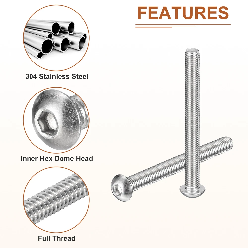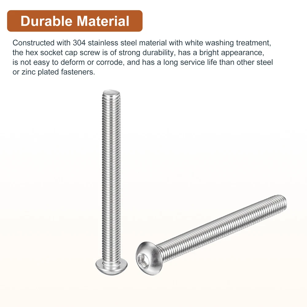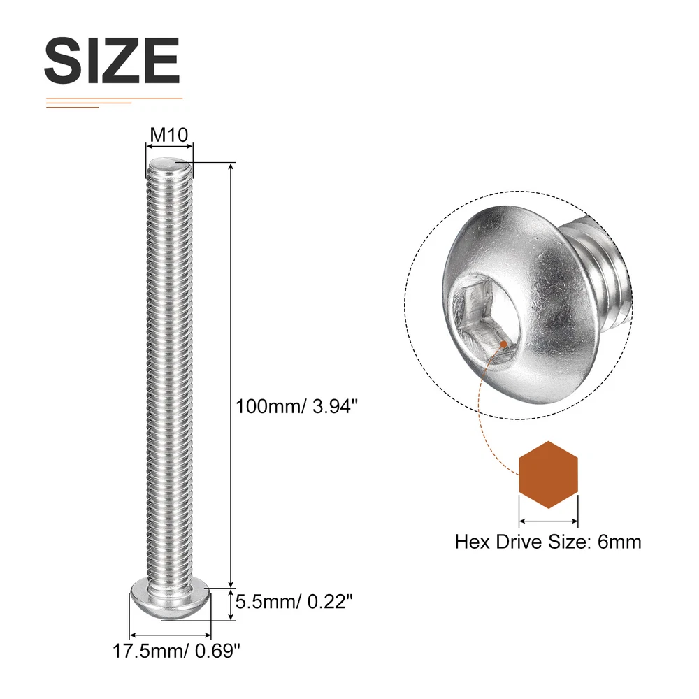 Document Product Details:Color: SilverMaterial: 304 Stainless Steel 18/8Thread Type: Full Thread; Coarse ThreadThread Dia: M10Thread Pitch: 1.5mm/ 0.06"Thread Length: 100mm/ 3.94"Head Dia.: 17.5mm/ 0.69"Head Thickness: 5.5mm/ 0.22"Package Content: 6pcs x Button Head Hex Socket ScrewsMaterial - Constructed with 304 stainless steel material with white washing treatment, the hex socket cap screw is of strong durability, has a bright appearance, is not easy to deform or corrode, and has a long service life than other steel or zinc plated fasteners.Feature - The button socket head cap screw is designed with an inner hex drive style and pan head, providing a higher torque and clamping force, as well as offering a wider bearing surface and high tensile strength. Application - Good replacement parts and construction fasteners for use in most machinery industries, automotive industries, electronics industries, manufacturing applications, die fixtures, and clamps.Installation - To access this hex drive screw, you will need to use a hex wrench to tighten or loosen. The socket button head design enhances torque capabilities, allowing for greater clamping force. For optimal results, it is recommended to use a retaining washer to securely lock the hex drive in place. 6PCS M10-1.5x100mm Button Head Socket Cap Screw Hex Drive Full Thread Fastener Product Details: Color: Silver Material: 304 Stainless Steel 18/8 Thread Type: Full Thread; Coarse Thread Thread Dia: M10 Thread Pitch: 1.5mm/ 0.06" Thread Length: 100mm/ 3.94" Head Dia.: 17.5mm/ 0.69" Head Thickness: 5.5mm/ 0.22" Package Content: 6pcs x Button Head Hex Socket Screws Material - Constructed with 304 stainless steel material with white washing treatment, the hex socket cap screw is of strong durability, has a bright appearance, is not easy to deform or corrode, and has a long service life than other steel or zinc plated fasteners. Feature - The button socket head cap screw is designed with an inner hex drive style and pan head, providing a higher torque and clamping force, as well as offering a wider bearing surface and high tensile strength. Application - Good replacement parts and construction fasteners for use in most machinery industries, automotive industries, electronics industries, manufacturing applications, die fixtures, and clamps. Installation - To access this hex drive screw, you will need to use a hex wrench to tighten or loosen. The socket button head design enhances torque capabilities, allowing for greater clamping force. For optimal results, it is recommended to use a retaining washer to securely lock the hex drive in place. Hot Item Payment 1.We accept eBay payment . 2.Payment must be received within 7 business days of auction closing. Shipping 1.We ship to your eBay or Paypal address. Please make sure your eBay and Paypal address is correct before you pay. 2.Items will be shipped within 1-3 business day when we received payment. 3.Delivery time depends on destination and other factors. Description Policy 6PCS M10-1.5x100mm Button Head Socket Cap Screw Hex Drive Full Thread Fastener Product Details: Color: Silver Material: 304 Stainless Steel 18/8 Thread Type: Full Thread; Coarse Thread Thread Dia: M10 Thread Pitch: 1.5mm/ 0.06" Thread Length: 100mm/ 3.94" Head Dia.: 17.5mm/ 0.69" Head Thickness: 5.5mm/ 0.22" Package Content: 6pcs x Button Head Hex Socket Screws Material - Constructed with 304 stainless steel material with white washing treatment, the hex socket cap screw is of strong durability, has a bright appearance, is not easy to deform or corrode, and has a long service life than other steel or zinc plated fasteners. Feature - The button socket head cap screw is designed with an inner hex drive style and pan head, providing a higher torque and clamping force, as well as offering a wider bearing surface and high tensile strength. Application - Good replacement parts and construction fasteners for use in most machinery industries, automotive industries, electronics industries, manufacturing applications, die fixtures, and clamps. Installation - To access this hex drive screw, you will need to use a hex wrench to tighten or loosen. The socket button head design enhances torque capabilities, allowing for greater clamping force. For optimal results, it is recommended to use a retaining washer to securely lock the hex drive in place. Hot Item Payment 1.We accept eBay payment . 2.Payment must be received within 7 business days of auction closing. Shipping 1.We ship to your eBay or Paypal address. Please make sure your eBay and Paypal address is correct before you pay. 2.Items will be shipped within 1-3 business day when we received payment. 3.Delivery time depends on destination and other factors.