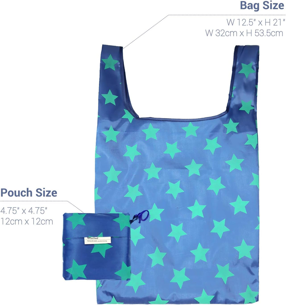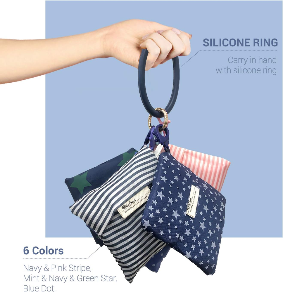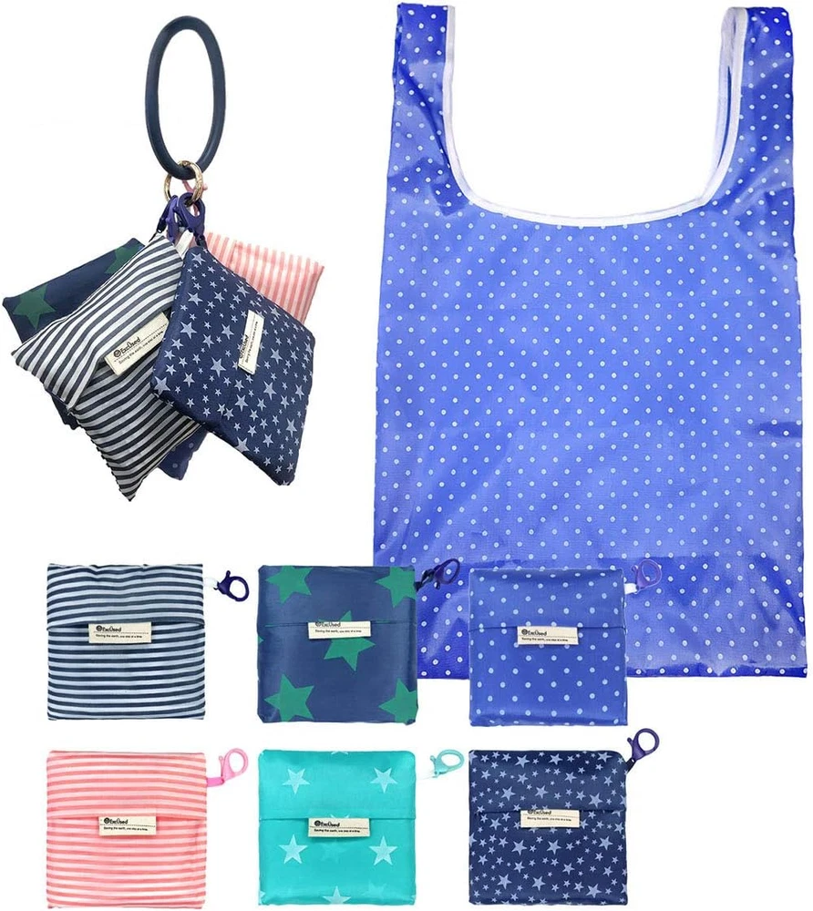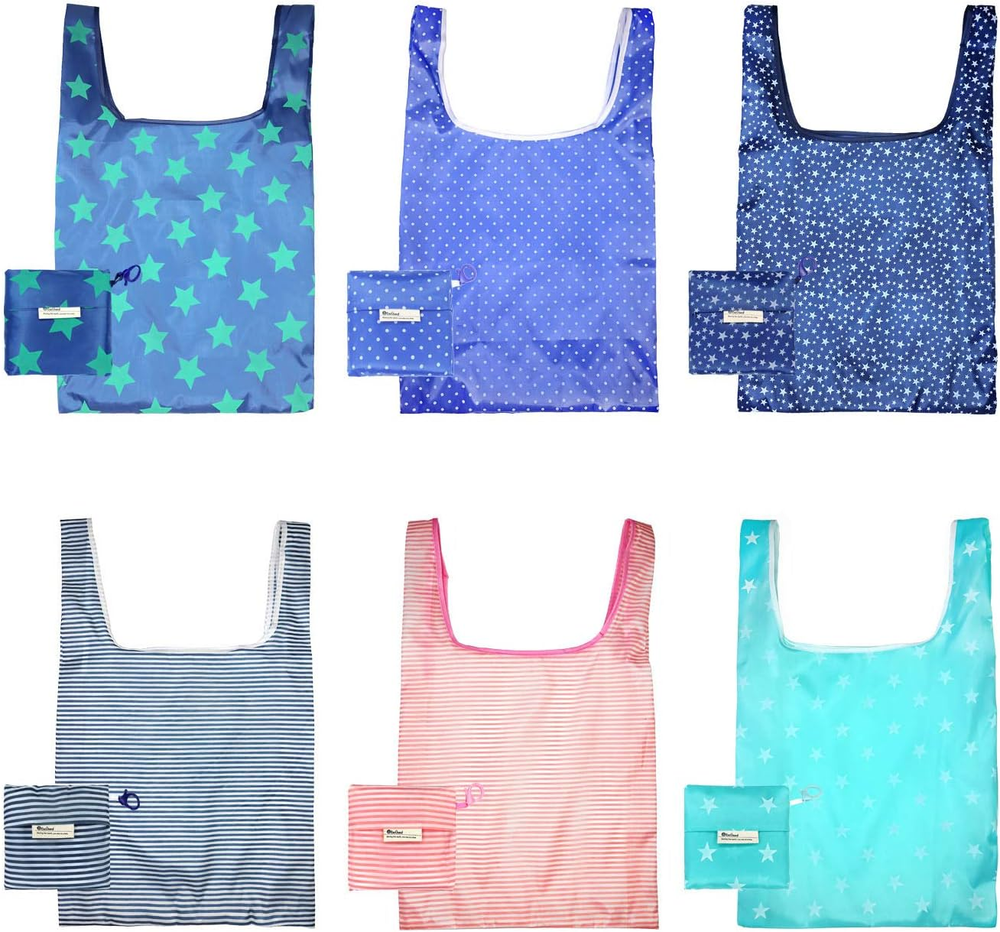 Home6-Pack Foldable Reusable Grocery Bags with Ring Holder - Machine Washable