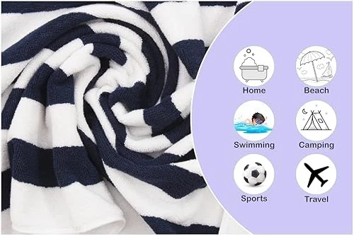$ 12.04Oversized Blue Striped Beach Towel Set 2pcs Flatwoven Cotton & Recycled Polyester