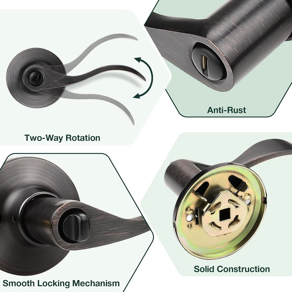 6-Pack Oil Rubbed Bronze Privacy Door Handles for Bedrooms & Bathrooms ‹ › ‹ › ‹ › ‹ › ‹ › ‹ › ‹ › ‹ › ‹ › ‹ › 6-Pack Oil Rubbed Bronze Privacy Door Handles - Perfect for Bedrooms & Bathrooms Highlights: Privacy Door Lever (Keyless): Ideal for bedrooms and bathrooms, featuring a thumb-turn for easy locking from inside and a coin release for emergencies. Modern Design: Sleek and simple style that harmonizes effortlessly with any contemporary decor. Sturdy Construction: Crafted from premium stainless steel and zinc alloy for durability you can rely on. Standard Fit: Designed to fit standard-sized doors with a thickness of 35mm to 45mm (1-3/8" to 1-3/4"), suitable for both left and right-handed doors. Dimensions: Rosette Diameter: 2-3/5" (65mm); Handle Length: 4-7/10" (120mm); Adjustable Latch: 2-3/8" or 2-3/4" (60 or 70mm) backset. Effortless Installation: Includes installation instructions and all necessary hardware; all you need is a door and a Phillips screwdriver. Why Choose Our Privacy Door Handles? Elevate your space with our Oil Rubbed Bronze Privacy Door Handles, designed to blend seamlessly into your modern interior while ensuring privacy and security. Whether outfitting bedrooms or bathrooms, these door handles provide a robust solution that complements your decor and meets your everyday needs. The quality craftsmanship ensures longevity, while the easy installation process allows you to upgrade your doors without hassle. Trust our brand, chosen by thousands of households, to bring premium quality and style into your home. Experience the difference—choose our door handles today! Shipping Free & Fast Shipping - We offer free shipping to most of the USA with a normal delivery time of 3-7 days. However, due to the current situation, additional delivery time (up to 3 weeks) may be required for some items. Alternative Carriers - We may use alternative carriers (e.g. USPS, FedEx, UPS, etc.) to ensure your package arrives safely and on time. Due to the use of multiple carriers, we are unable to provide a tracking number automatically. Handling Time - Orders are processed and shipped within 1-2 business days of receiving cleared payment. Shipping Restrictions - Shipping to Alaska, Hawaii, Puerto Rico, Guam, and other US territories may incur shipping charges or delivery restrictions. Please contact us before ordering, or your order can be refunded/cancelled. State Restrictions - There may be restrictions based on your state of purchase. For example, certain items may not be shipped to California due to state regulations. Contact for Tracking Updates - If you require tracking updates or have any concerns about the delivery of your order, please feel free to contact us, and we will be happy to assist you. Return 30-Day Hassle-Free Returns - We want you to be completely satisfied with your purchase. If you are not, you can return the item within 30 days of receiving it for a full refund or exchange. Easy Return Process - To start a return, simply contact us and we will provide you with a prepaid return shipping label and detailed instructions. Restocking Fee - There are no restocking fees for returns. However, the buyer is responsible for return shipping costs if the return is not due to a seller's error. Refund Processing Time - Refunds will be processed within 5 business days of receiving the returned item in its original condition. Payment We accept all major credit cards, PayPal, and Apple Pay for your convenience. Your payment information is secure and encrypted to ensure a safe and seamless transaction. Please complete your payment within 3 days of purchase to avoid any delays in shipping. Feedback Your feedback is extremely important to us. We strive to provide the best products and customer service possible. If you are satisfied with your purchase, please take a moment to leave us a positive review. If you have any concerns or issues with your order, please contact us before leaving negative feedback. We are committed to resolving any problems and ensuring your satisfaction. Contact Us If you have any questions or concerns, please feel free to reach out to our customer support team. You can contact us through the eBay messaging system. We are available Monday to Friday, 9:00 am to 5:00 pm EST, and we will do our best to respond to your inquiry within 24 hours. Buy it now and enjoy a pleasant shopping experience! UPC: Not Set Model: Not Set Unit Quantity: 6 Material: Bronze,Stainless Steel,Zinc,Zinc Alloy Suitable For: Bedroom,Bathroom Features: Easy to Install Items Included: Door Levers,Necessary Fitting Components,Installation Instruction Brand: Unbranded Type: Door Handle Color: Oil Rubbed Bronze Finish: Bronze Item Height: Not Set Item Width: Not Set Item Length: Not Set Knob Diameter: 2.6 in MPN: Not Set Style: Modern Number in Pack: 6 Shape: Wave Country/Region of Manufacture: Not Set Door Handing: Not Set Item Depth: 2.6 in Manufacturer Warranty: Not Set Item Weight: 8.51 lb Unit Type: lb Fixings Supplied: Not Set