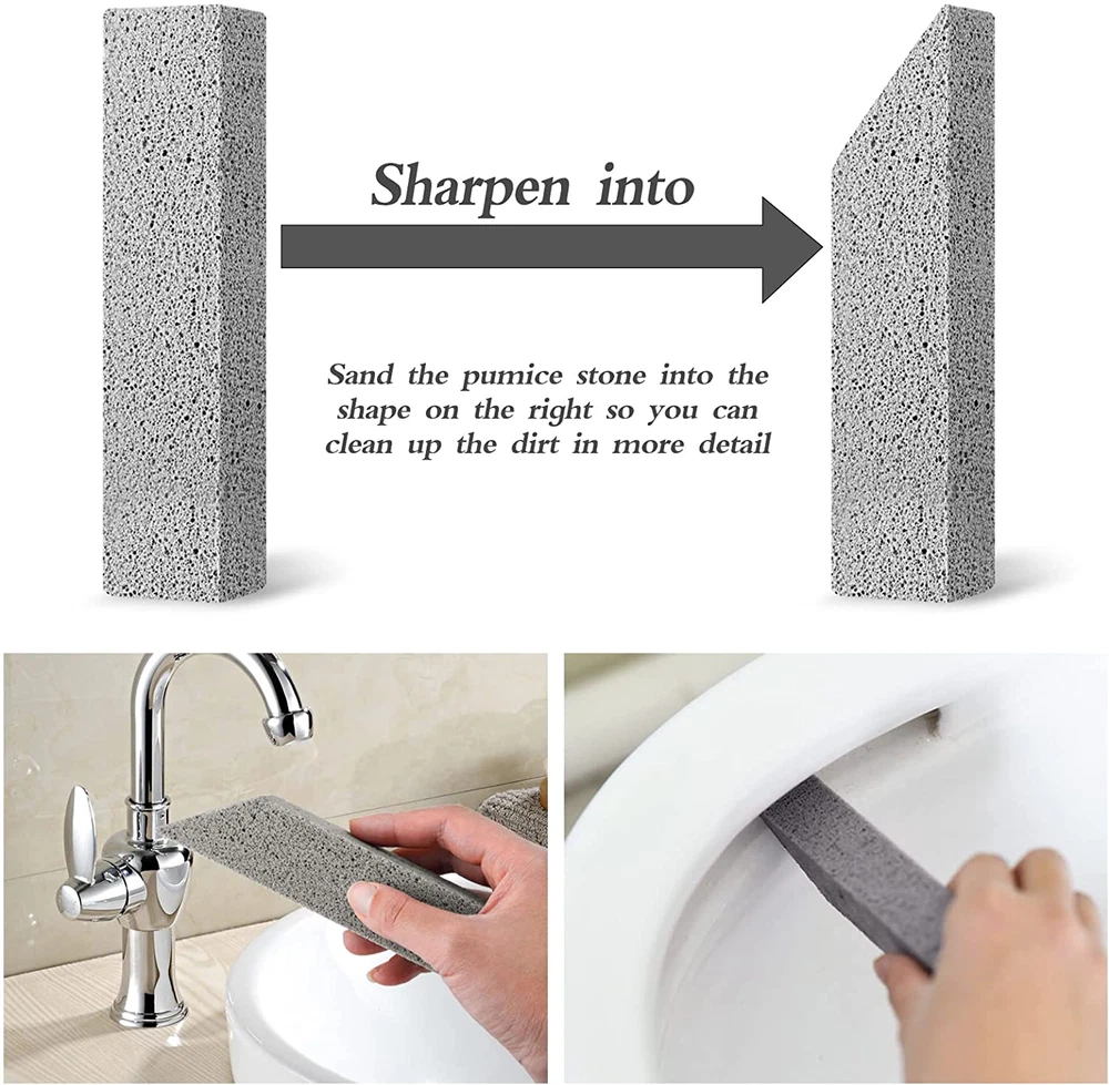Scope of use:Pumice stone is used in toilets to clean calcium deposits, limescale and hard water rings on toilets, sinks, bathroom tiles and other ceramic surfaces. It can also be used to remove rust and grease from grills and ovens. material:Manufactured from recycled material (glass). Will not scratch the toilet or bathtub, and the cleaning process is simple, convenient and effective. Convenient and effective:Pumices tone can polish toilet bowls. Tiny particles can remove dirt through friction. It gradually wears down during use. Two pumice stones will quickly refresh your toilet within a few minutes. It is much cheaper than buying a new toilet. Instructions:Wet the pumice stone first for 15 to 20 seconds, then test in a small area, keep the pumice stone and toilet surface moist throughout use, and then wipe clockwise to easily remove the dirt. Lenicany pumice stones to make the environment around you cleaner Use little tricks: Wet it first for 20 seconds Test its scratch resistance in a small area Keeps pumice and toilet surfaces moist and easily removes grime Clockwise cleaning is faster and more effective. Package includes: 6 x Pumice stone for toilet bowl cleaning Size: 5.9 x 1.4 x 0.9 inches