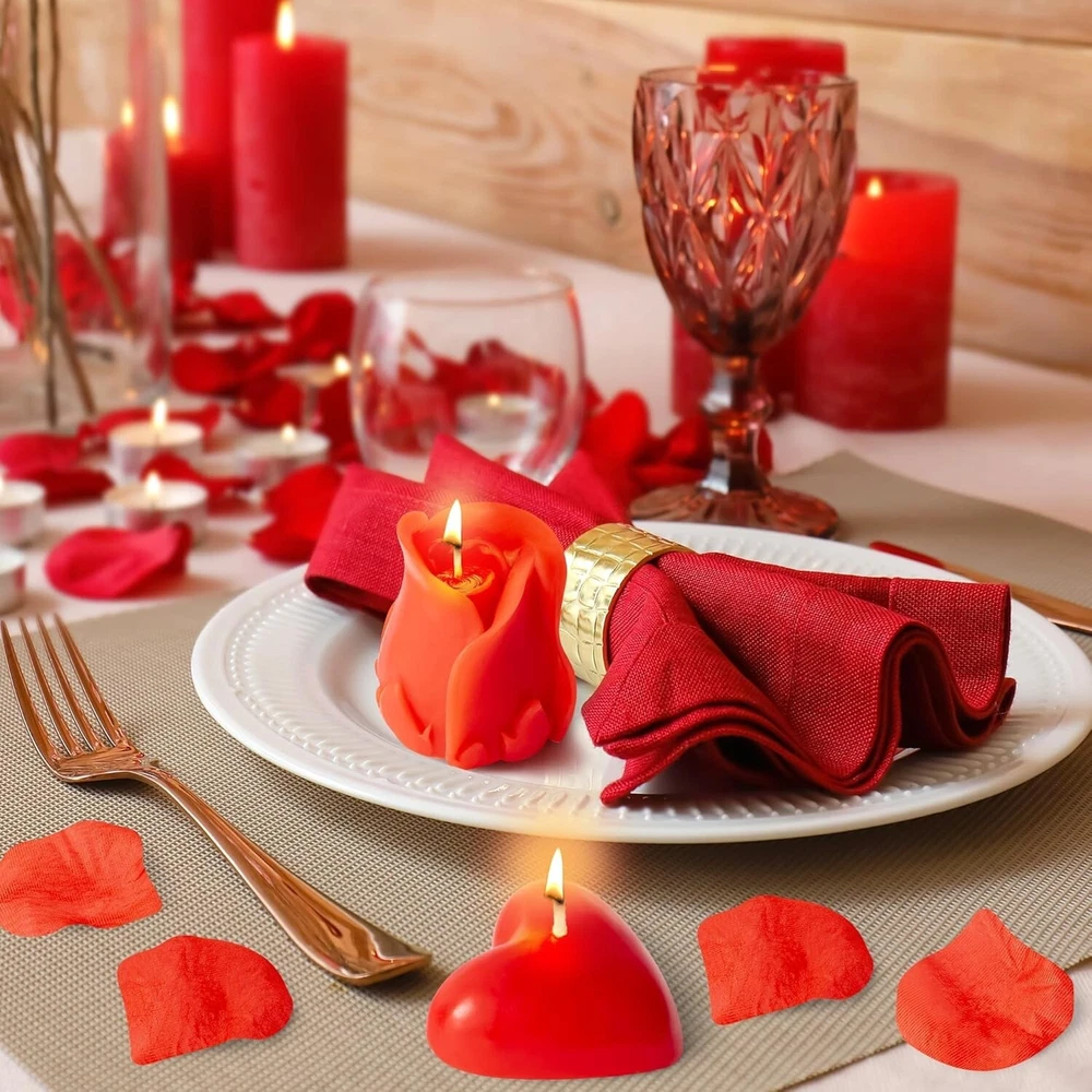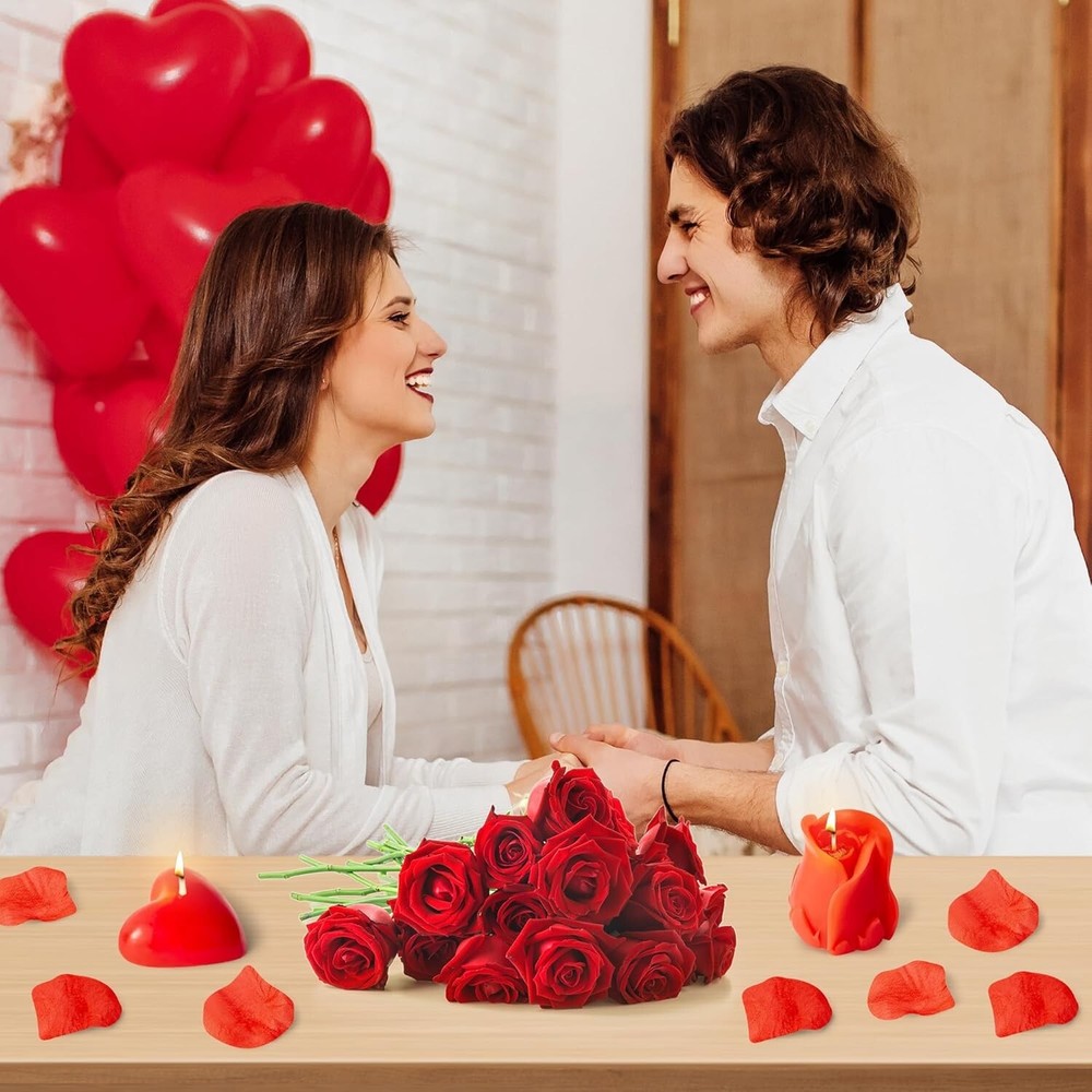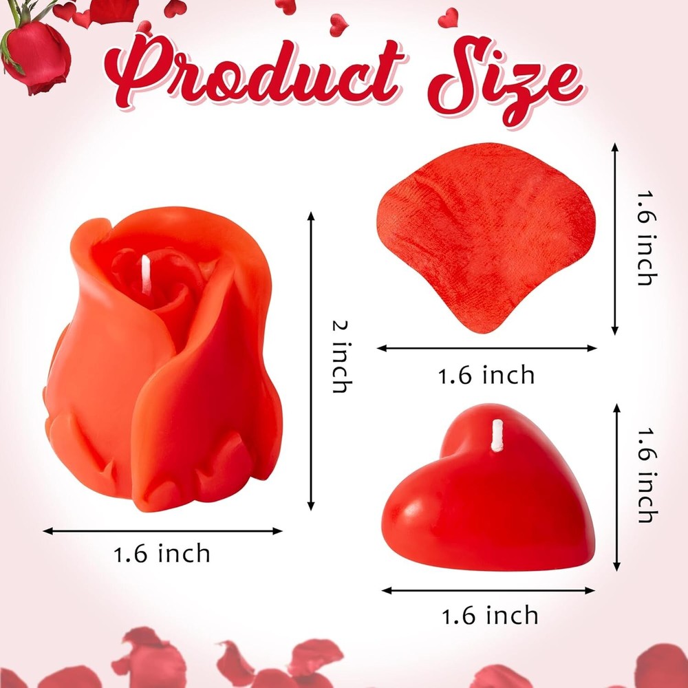 6 pcs Rose & Heart Candles With 100 Petals Tea, Light Candles Valentine’s Day Set for Decor (Free & Fast Shipping) Create a Romantic Atmosphere with This Valentine’s Day Candle Set! Set the perfect mood for Valentine’s Day, weddings, anniversaries, or special date nights with this charming Romantic Candle & Rose Petal Set! Featuring 4 mini rose-shaped candles, 2 heart-shaped candles, and 100 fabric rose petals, this set adds warmth, elegance, and love to any space. 💖 Why You’ll Love It? ✨ Romantic & Elegant: Beautiful red rose and heart-shaped candles for a dreamy setting. ✨ Versatile Decoration: Ideal for table centerpieces, bedroom decor, surprise proposals, and more! ✨ Safe & High-Quality: Made from premium wax for a clean, steady burn. The fabric petals bring a realistic touch of romance. ✨ Perfect Gift Idea: Surprise your loved one with this thoughtful set for Valentine’s Day, anniversaries, weddings, or bridal showers! Whether you're planning a candlelit dinner, decorating for a special event, or gifting a loved one, this set is designed to create unforgettable moments! ❤️