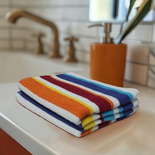 Return Policy Fast Delivery Trusted seller Hand Towels - Set of 6 Yarn Dyed Terry 100% Cotton Hand Towels - Super Soft Quick Dry Easy Care Absorbent Towels for Bathroom Kitchen Toddlers Children - 16 x 27 - Cabana Stripe Multi Product Description 6 Pack Great Value - Refresh your towel collection with this set of 6 multicolor cabana stripe hand towels by , crafted from 100% yarn-dyed cotton terry. Featuring a 450 GSM weight, these towels offer the ideal mix of plush softness and quick drying. Each towel is generously sized at 16 x 27 inches and weighs about 1.65 pounds, making them perfect for everyday use in bathrooms, kitchens, daycares, travel, or the pool. Soft & Absorbent Cotton – Made from 100% cotton yarn-dyed terry, these towels are prewashed for an extra soft feel and offer a plush 450 GSM thickness for quick drying and lasting comfort. Classic Multi Stripe Design – Featuring multicolor bright stripes, these towels bring a fun, fresh look to any bathroom and make a stylish addition to pool or beach outings. Soft, Absorbent & Quick-Drying: With a 450 GSM weight, these towels strike the ideal balance between absorbency and fast drying. Perfect for busy households, kids' everyday use at home, school, or daycare. Versatile & Machine Washable: Great for bath time, hand drying, or post-pool use. Easy to maintain—just machine wash cold with like colors. Wash dark colors separately. Do not bleach. Tumble dry low. Shipping Returns Payment Shipping Shipping is FREE to all addresses other than APO/PO boxes in the lower 48 states. All our stock ships from US-based warehouses. Shipped via USPS or UPS (depending on location and package weight) Unless stated otherwise, all orders will ship within 24-72 hours of your payment being processed. Check our feedback to see the great reviews of FAST shipping we offer. Returns Seller does not accept returns Payment We currently accept payment via eBay managed payments only. Once payment is cleared, we will dispatch your shipment within 1-3 business days. Please refer to the "Shipping" tab for more information regarding shipping speed to your destination.