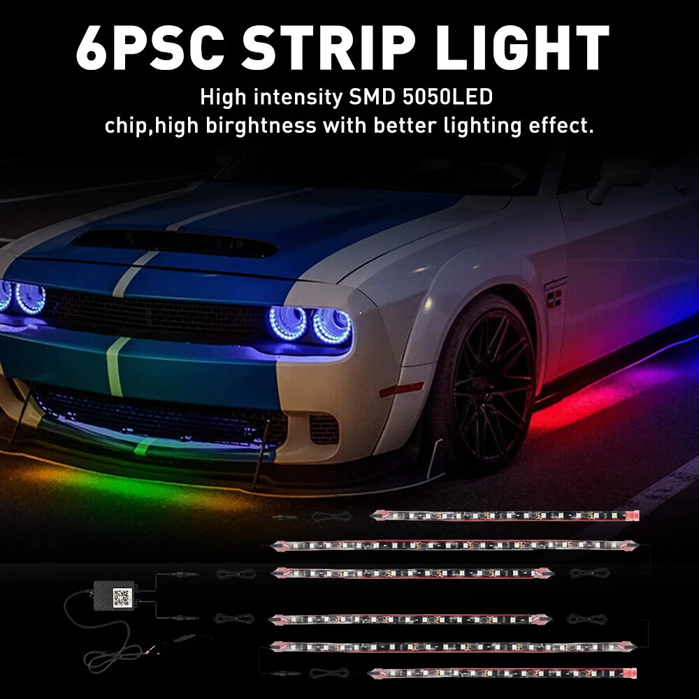 6Pc Car RGB LED Underglow Smart Light Neon Strips Accent Kit Dream Color Chasing