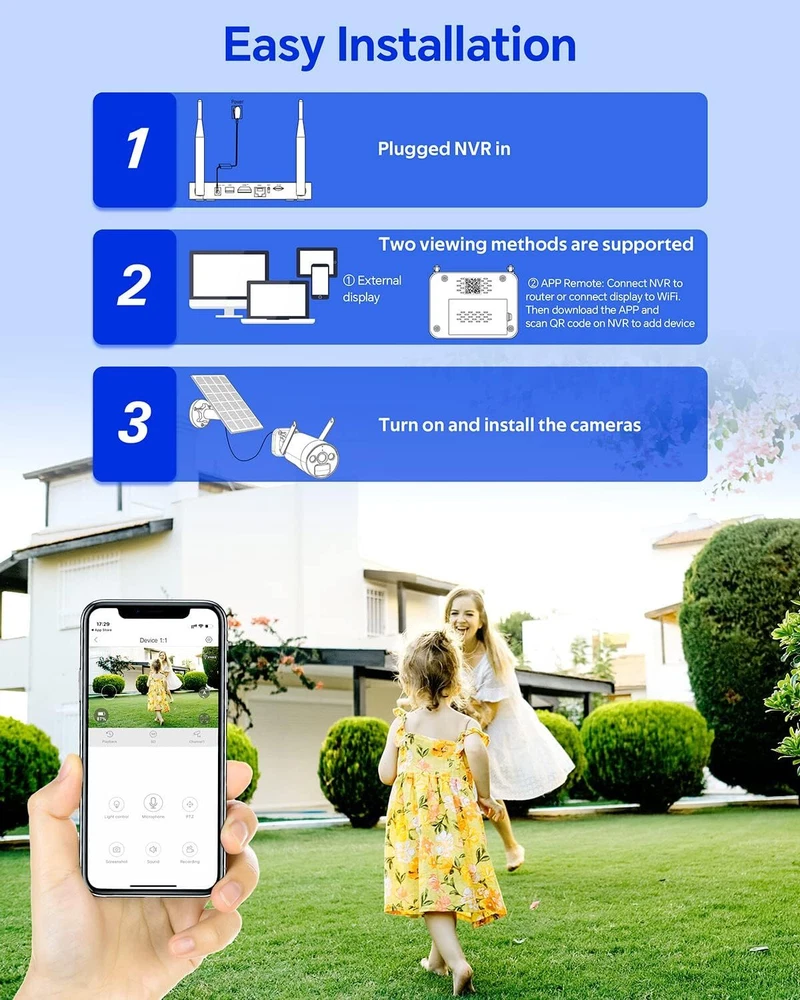 New Releases 2MP 10CH NVR Full Color Wireless PT IP Security Camera System 2 Way Audio Record 179.54 USD 188.99 USD Free shipping 5% off TOGUARD 8CH 1080P Wireless Security Camera System NVR CCTV Cam w/12" LCD Monitor 256.49 USD 269.99 USD Free shipping 5% off CAMCAMP 8CH 4K POE Security Camera System IP Camera 3TBHDD 2-way Audio AI Detect 275.49 USD 289.99 USD Free shipping 5% off TOGUARD 8CH NVR 1080P Video Wireless Security Camera System Outdoor WIFI CCTV3TB 189.71 USD 199.69 USD Free shipping 5% off Wireless Solar Powered Security Camera System, Include 6PCS 100% Wire-Free Camera & NVR (Pre-Installed 500GB HDD) , Forever Power, 4MP Color Night Vision, IP66 Waterproof, PIR Motion Detection Ship from US! Fast shipping! 100% Satisfaction! 4MP Wireless Solar Powered Security Camera System, 6PCS 100% Wire-Free Camera Kedwords: đŸ ăMini NVR & 500GB HDDă There is a wireless private connection between the NVR and wireless security cameras, which ensures more stable, farther, faster transmission and maximize information security. Equipped with a pre-installed 500GB hard drive, which has enough memory space to store more videos, and supports playback videos up to several years ago đ» ăSupport external displayă The NVR supports external display, local viewing is clear at a glance, equipped with a mouse, and supports HDMI high-definition video output. Built-in stereo loudspeakers. It's not necessary to connect to the network when watching locally đ¶ ăSolar Powered & 100% Wire-freeă Wireless security camera system includes 6 rechargeable cameras and 6 solar panels. Solar panels can better extend the battery life of the camera and charge the camera under light. No need for power and network cables when installing, 100% wire-free đ„ ă4MP 32ft 120° color night visionă 4MP (2592Ă1944P) wireless home security system adopts 4mm lens, 10x digital zoom, 2 LED lamp beads, 5DB antenna. Dual LED light source support 4MP 32ft 120° color night vision. Turn on the spot light in APP to achieve color night vision đ ăSmart PIR motion detection & APP instant alertsă Wireless solar security camera system adopts PIR motion detection. Recording will only be started when a heat source is detected. Then camera system will push an instant alerts to the APP. The PIR induction distance is 32ft đ ăTwo-way audio & Multi-device sharingă There are microphones and speakers on the wireless home security camera system which supports real-time response. It will be more convenient for you to communicate with family or guests through the APP. SC17 security system supports multi-device sharing with family members đ ăAPP remote & custom privacy zonesă Connect NVR to router or connect display to WiFi. Then download the APP and scan the QR code on the NVR to add the device( download "CloudEye" for iOS / "Eseecloud" for Android ). You could live view video or playback videos in APP. Support for adding privacy zones in APP Equipped with a pre-installed 500GB hard drive, which has enough memory space to store more videos, and supports playback videos up to several years ago.. 500GB Hard Drive Support Watching Locally Non-stop Solar Power 100% Wire-Free Color Night Vision Local Playback Interface APP Playback Interface Download "CloudEye" APP for iOS / "Eseecloud" APP for Android Return 1. Accept Return in 30 days for refund or replacement, goods in resalable condition 2. Offer one year for repair warranty 3. Contact for address and reference number before return(note: unannounced parcel may be returned to wrong address, seller will not be responsible for this 4. First 2 months of purchase, buyer pay return postage, seller pay postage for replacement, After 2 months of purchase, non-quality problem, 2 ways of shipping cost paid by the buyer, After 4 months, two way shipping cost paid by the buyer in any circumstances 5. No factory warranty for the man-made damage(Such as dismantle mainboard, damage screen etc), Our company offer service, factory may charge for repair, contact us for details Shipping Fast shipping by US LOCAL FAST SHIPPING , Mostly, all of the products will be shipped out within 1 working day after we received the payment and your contact phone number, We always ship to your paypal address, so if your shipping address is not matched with it, please note the address you want us to ship in paypal Why Choose the US Stock ? 1. US Local Shipping, No Extra Customs Cost to the US 2. Fast Delivery: 2-5 Working days Delivery 3. Best After-Sales Service!!! Feedback Please leave five stars positive feedback positive comment and Five-Stars . Contact us if you have any question, Give us a chance to serve you, negative feedback could not solve anything. communication Please! Payment We accept all major Credit cards, PayPal, and Google Pay. Taxes may be applicable at checkout.