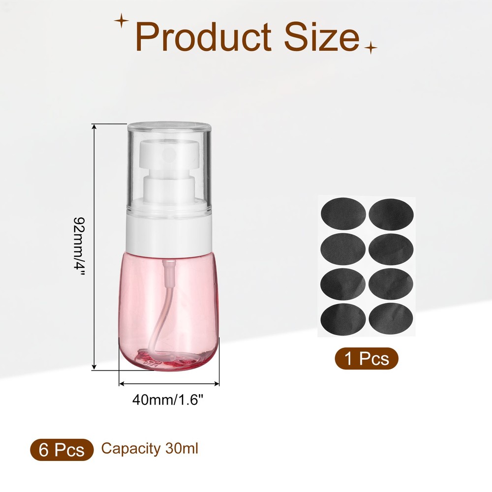 Document Description:PETG Material: Our small spray bottle is made of durable PETG material, which has the same transparency as glass, good gloss, corrosion resistance, and impact resistance. So our spray bottles can withstand repeated use without cracking or breaking.Leakproof Design: The compact spray bottles make it convenient for us to use, ensuring a tight sea. The screw cap features a screw-on design for easy spraying out and leak-proof performance with a transparent cap to prevent accidental presses.Fine Spray Nozzle: The bottles come with a fine spray nozzle that provides a distributed and even mist and will not clog with frequent use. When used, the mist is gently and evenly sprayed over your face.Wide Application: Suitable for various skin care products, cosmetics, and other liquids such as alcohol. They are versatile and suitable for hair styling, pet sprays, ironing and other tasks.Specification:Size: 92 x 40 mm/4 x 1.6 inches (H*OD)Capacity: 30ml/1 ozMaterial: PETGPackage Content: 6 Pcs Small Spray Bottles with Self Adhesive Label 6Pcs Spray Bottles, 30ml/1oz Travel Size Spray Bottle with Labels (Pink/Clear) Description: PETG Material : Our small spray bottle is made of durable PETG material, which has the same transparency as glass, good gloss, corrosion resistance, and impact resistance. So our spray bottles can withstand repeated use without cracking or breaking. Leakproof Design: The compact spray bottles make it convenient for us to use, ensuring a tight sea. The screw cap features a screw-on design for easy spraying out and leak-proof performance with a transparent cap to prevent accidental presses. Fine Spray Nozzle: The bottles come with a fine spray nozzle that provides a distributed and even mist and will not clog with frequent use. When used, the mist is gently and evenly sprayed over your face. Wide Application: Suitable for various skin care products, cosmetics, and other liquids such as alcohol. They are versatile and suitable for hair styling, pet sprays, ironing and other tasks. Specification: Size: 92 x 40 mm/4 x 1.6 inches (H*OD) Capacity: 30ml/1 oz Material: PETG Package Content: 6 Pcs Small Spray Bottles with Self Adhesive Label Hot Item Payment 1.We accept eBay payment . 2.Payment must be received within 7 business days of auction closing. Shipping 1.We ship to your eBay or Paypal address. Please make sure your eBay and Paypal address is correct before you pay. 2.Items will be shipped within 1-3 business day when we received payment. 3.Delivery time depends on destination and other factors. Description Policy 6Pcs Spray Bottles, 30ml/1oz Travel Size Spray Bottle with Labels (Pink/Clear) Description: PETG Material : Our small spray bottle is made of durable PETG material, which has the same transparency as glass, good gloss, corrosion resistance, and impact resistance. So our spray bottles can withstand repeated use without cracking or breaking. Leakproof Design: The compact spray bottles make it convenient for us to use, ensuring a tight sea. The screw cap features a screw-on design for easy spraying out and leak-proof performance with a transparent cap to prevent accidental presses. Fine Spray Nozzle: The bottles come with a fine spray nozzle that provides a distributed and even mist and will not clog with frequent use. When used, the mist is gently and evenly sprayed over your face. Wide Application: Suitable for various skin care products, cosmetics, and other liquids such as alcohol. They are versatile and suitable for hair styling, pet sprays, ironing and other tasks. Specification: Size: 92 x 40 mm/4 x 1.6 inches (H*OD) Capacity: 30ml/1 oz Material: PETG Package Content: 6 Pcs Small Spray Bottles with Self Adhesive Label Hot Item Payment 1.We accept eBay payment . 2.Payment must be received within 7 business days of auction closing. Shipping 1.We ship to your eBay or Paypal address. Please make sure your eBay and Paypal address is correct before you pay. 2.Items will be shipped within 1-3 business day when we received payment. 3.Delivery time depends on destination and other factors.