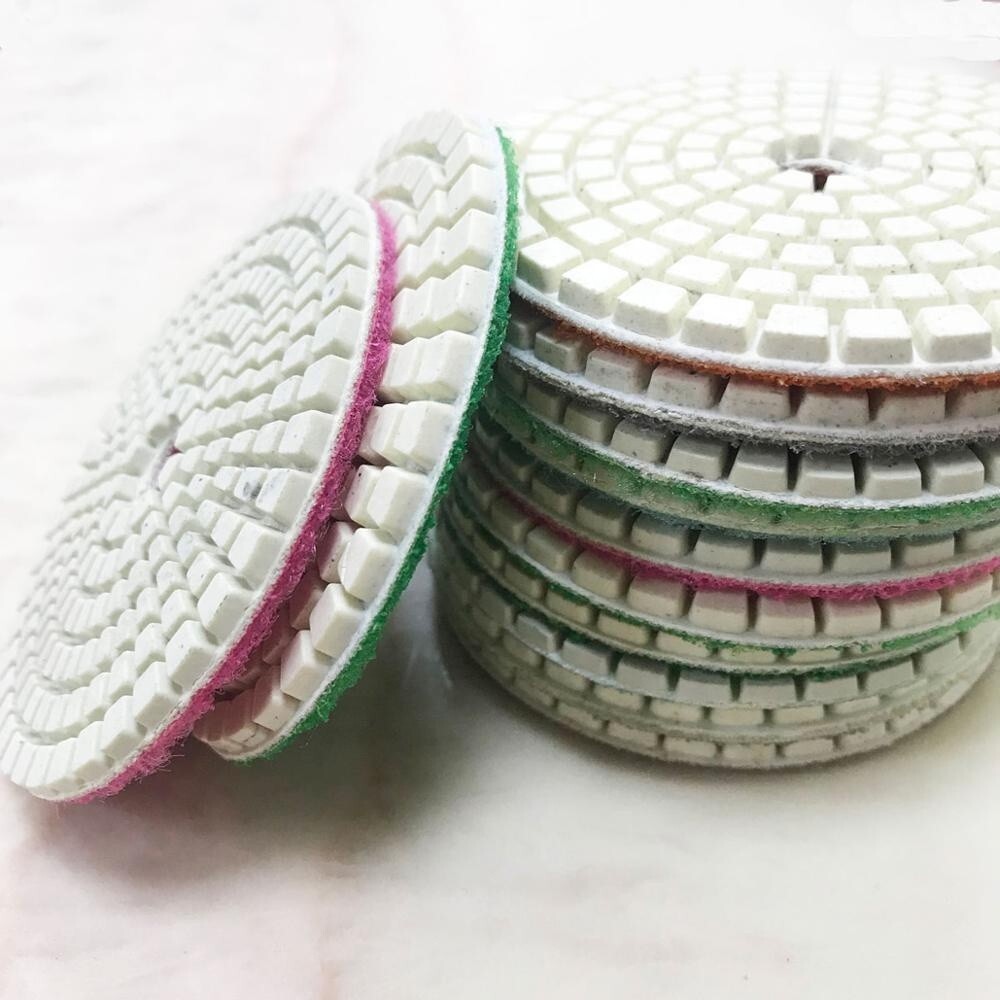 11 PCS 6" Inch Diamond Polishing Pad Granite Concrete Marble Stone Grinder Slab this package contains 11 Pieces of 6" Diamond Polishing Pad for granite marble concrete: 2 X Grit 50 100 200, 1 X Grit 400 800 1500 3000 6000. - 3.2mm thickness - recommend 2500 - 5000 rpm (polisher or grinder speed must be lower than 5000 RPM). - wet or dry use (wet use recommended).