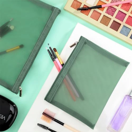 These mesh makeup bags are a game-changer for travel and daily organization! The see-through design makes finding items a breeze, and the sturdy zippers keep everything secure. Perfect for toiletries, cosmetics, or small accessories—love that they come in two handy sizes. The lightweight material is durable yet easy to clean, and the green color adds a nice pop. Great value for a set of six—ideal for gifting or keeping your essentials sorted at home, work, or on the go. Fast shipping and a reliable return policy make this purchase worry-free!