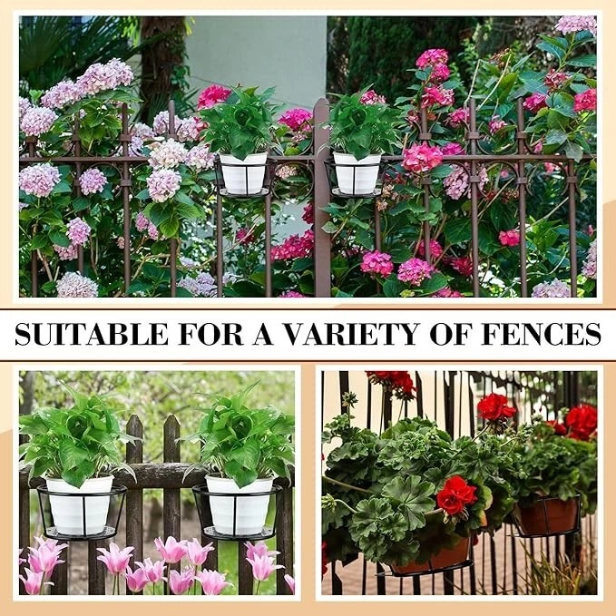 Enough to use and share: You will receive 6 pieces of balcony flower pot railing pendants, designed with double hooks, you can put your favorite plants on them and hang them on the railings indoors and outdoors, the quantity is enough to meet your daily use and replacement needs. Sturdy and stable: Our orchid hanging flower pots are made of high-quality iron material, which is strong and firm enough to resist breakage, deformation and fracture, and the surface is painted black to avoid rust, which can serve you for a long time. Classic appearance: These balcony railing flower pots are in classic black, suitable for a variety of styles, can display indoor plants well, and will not take up too much space, practical and decorative. Wide application: Our plant pot racks can be used to decorate your balcony, garden, courtyard, lawn, fence, home, deck, porch railing, bedroom, living room, office, coffee shop, flower shop, bookstore, etc., suitable for indoor and outdoor decoration.