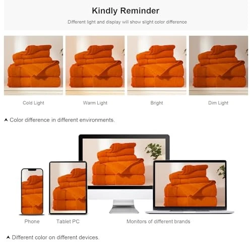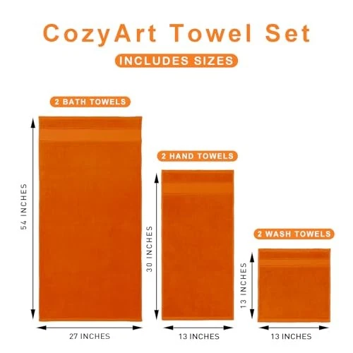 Return Policy Fast Delivery Trusted seller Orange Bath Towel Set 6 Piece, 2 Bath Towels 2 Hand Towels 2 Washcloths, Luxury 100% Turkish Cotton 650GSM Hotel Quality, Soft, Absorbent, Towel Sets for Bathroom Product Description 100% Pure Cotton Towel Sets: The 100% Cotton bath towel sets is made of soft and durable ring spun terry, that is durable, softness, and quick drying. 650 gsm which provides extra absorbency. And used a zig zag stitch (closed overlock), which is a more complicated and firmer stitching method than double-stitched hem, which enhances the durability of the towel. Ideal choice for your life. Towels Set Includes: 6 Piece Towels. 2 Bath Towels(27 x 54 inches), 2 Hand Towels(13 x 30 inches) and 2 Washcloths(13 x 13 inches). These pure cotton towels set come in a variety of beautiful colors to complement with any home, dorm or hotel bathroom. EASY CARE: Machine Washable. Wash these bath towels sets separately as it will help in avoiding any kind of lint transfer onto your clothes. After washing you will get soft fluffy and comfortable towels. It is normal that a slight color fade or small fluff, so please clean it for the first time and wash the towels separately according to the washing instructions. Enjoy Life:Pamper yourself with Luxurious and comfortable bath towels made of 100% pure cotton. Each towel provides optimal coverage, absorbency. You can use these towels for body as beach bathroom decor, bathroom decor sets accessories, etc. in your bathroom, hotel & spa, kitchen, gym, and anyw you need. Satisfaction Assured: If you are not completely satisfied with our towel set, our customer service team would be happy to entertain all your concerns and provide best solution for the scenario. Please feel free to reach out to us! Shipping Returns Payment Shipping Shipping is FREE to all addresses other than APO/PO boxes in the lower 48 states. All our stock ships from US-based warehouses. Shipped via USPS or UPS (depending on location and package weight) Unless stated otherwise, all orders will ship within 24-72 hours of your payment being processed. Check our feedback to see the great reviews of FAST shipping we offer. Returns Seller does not accept returns Payment We currently accept payment via eBay managed payments only. Once payment is cleared, we will dispatch your shipment within 1-3 business days. Please refer to the "Shipping" tab for more information regarding shipping speed to your destination.