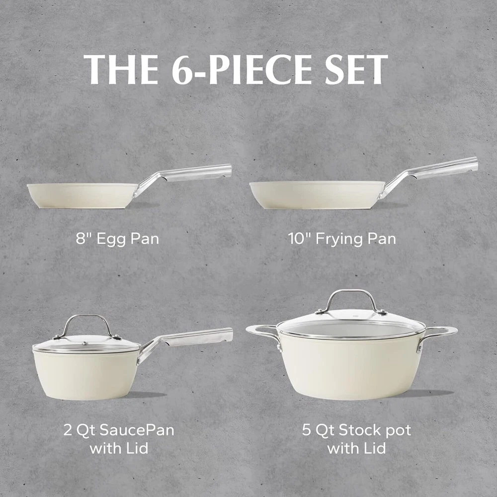 About this item SAFE & HEALTHY: Made with food-grade Ti-ceramic materials that are free of PFAS, PTFE, lead, and cadmium. No harmful chemicals or toxins for your family. ULTRA-DURABLE & NONSTICK: Natural ceramic particles form a textured surface that interlocks with enhanced basement structure for superior nonstick performance. Resists chipping, flaking, and sticking. Unique Ti-ceramic technology make this pan more durable than other normal ceramic pans. STURDY & COMFORTABLE: Stainless steel handle with double-riveted for strength and maneuverability. Ergonomic design for easy grip and control. VERSATILE & CONVENIENT: Oven safe up to 842°F for pans and 500°F for lids. Suitable for gas, electric, glass ceramic, and induction stoves. Metal-utensil safe, dishwasher-safe, and easy to clean.