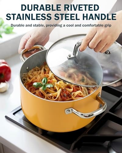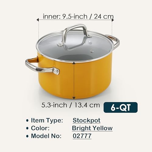 Return Policy Fast Delivery Trusted seller Non Stick Stock Pot with Lid, 6-Quart Hard Anodized Ceramic Nonstick Gumbo Pasta Pot, Induction Cookware Stockpot for Cooking, Canning, Sauce, Ollas para Cocina, Yellow Product Description Design of the Shining Kitchen: The Bright Yellow Stockpot gives a fresh and lively feeling, as if sunlight is shining on the kitchen, and can also inject a sense of joy and vitality into your cooking time Excellent Nonstick Performance: The Coating of Hard Anodized Ceramic can withstand high-temperature cooking, ensuring that food slides off easily and away from annoying sticky pot troubles Induction Compatible: Works on gas, electric, glass, ceramic, halogen, Induction; Oven safe up to 500℉(lid to 350℉); Dishwasher safe, hand wash is recommended Efficient Cooking: The Nonstick Stockpot is made of efficient heavy gauge aluminum, which conducts heat quickly and evenly, making food evenly heated and better cooking results Glass Lid and Comfortable Handle: Tempered glass lid with steam vent to view food while cooking; The Stainless Steel handle is heat resistant to prevent your hands from being burned, and not easily deformed Shipping Returns Payment Shipping Shipping is FREE to all addresses other than APO/PO boxes in the lower 48 states. All our stock ships from US-based warehouses. Shipped via USPS or UPS (depending on location and package weight) Unless stated otherwise, all orders will ship within 24-72 hours of your payment being processed. Check our feedback to see the great reviews of FAST shipping we offer. Returns Seller does not accept returns Payment We currently accept payment via eBay managed payments only. Once payment is cleared, we will dispatch your shipment within 1-3 business days. Please refer to the "Shipping" tab for more information regarding shipping speed to your destination.