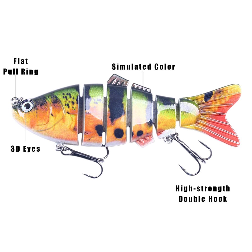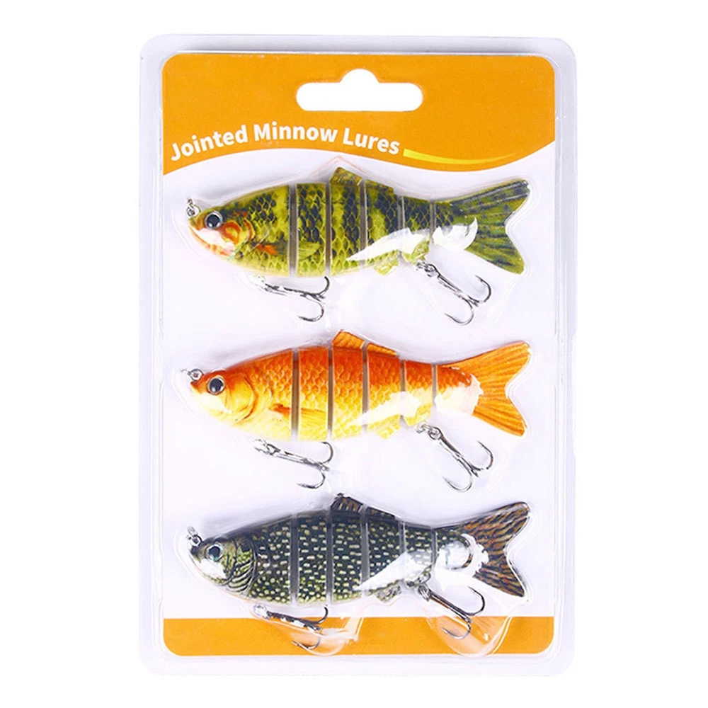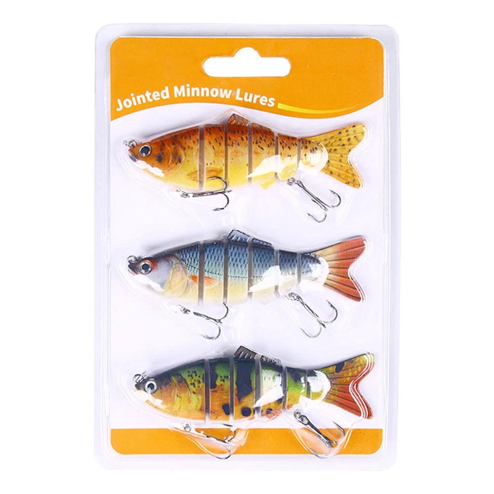 Simulation Fish Hooks – Realistic Fish Shape Lures for Freshwater & Saltwater Fishing Features: 🎯 Predator-Driven Design – Inspired by nature’s rule of survival, the lifelike fish shape mimics real prey, triggering instinctive strikes from larger fish. 🐟 Ultra-Realistic Details – Featuring 3D eyes and realistic contours, these lures create a vivid swimming motion that easily deceives target fish, increasing your catch rate. 🧵 Durable & Flexible Material – Crafted from high-quality plastic with strong, natural bending action. Each lure includes two sharp hooks to prevent fish from escaping. 🌊 Versatile Usage – Perfect for both saltwater and freshwater fishing. Whether you’re casting in lakes, rivers, or coastal waters, these lures work well on a wide variety of fish species. 🎁 Great Gift for Anglers – Whether for beginners or seasoned pros, this set makes an ideal gift for fishing lovers who appreciate effective and eye-catching gear. Specifications: Quantity: 3 Pieces Material: Durable plastic Hook Type: Dual-hook design Application: Suitable for lake, river, freshwater, and saltwater fishing