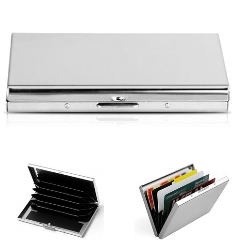 Crafted from lightweight yet robust brushed stainless steel, this Credit Card Wallet offers a sleek and modern solution to protect your most important items. This wallet is equipped with advanced RFID signal-blocking technology, a crucial feature in today's world where digital pickpocketing is on the rise. By incorporating this technology, the wallet effectively shields your cards from unauthorised scanning, keeping your personal and financial details secure from potential thieves. Inside, the wallet features high-quality PVC slots designed to securely hold up to six cards, including credit cards, debit cards, driver's licences, business cards, and folded notes. The internal compartments are arranged to ensure that your cards are held firmly in place, preventing any unwanted movement while still allowing for easy access when needed. The wallet opens and closes effortlessly, thanks to a reliable stainless steel latch mechanism that ensures the contents remain secure, preventing accidental openings. This attention to detail makes the Credit Card Wallet a practical choice for both men and women, whether for everyday use or as a travel essential. In an era where contactless payments are becoming increasingly common, the threat of RFID-based crime is growing. This wallet addresses this new wave of crime with its protective shield, which is specifically designed to prevent identity theft and unauthorized RFID scanning. Weighing in at only 80 grams and measuring a slim 12mm in thickness, this wallet is ideal for those who prefer a minimalist approach. It provides all the functionality of a traditional wallet without the bulk, making it perfect for slipping into a handbag, pocket, or even carrying on its own. The elegant brushed stainless steel finish not only adds to its durability but also gives it a stylish and sophisticated look, making it a versatile accessory that complements any outfit. UK Stock, so fast 3 day delivery.