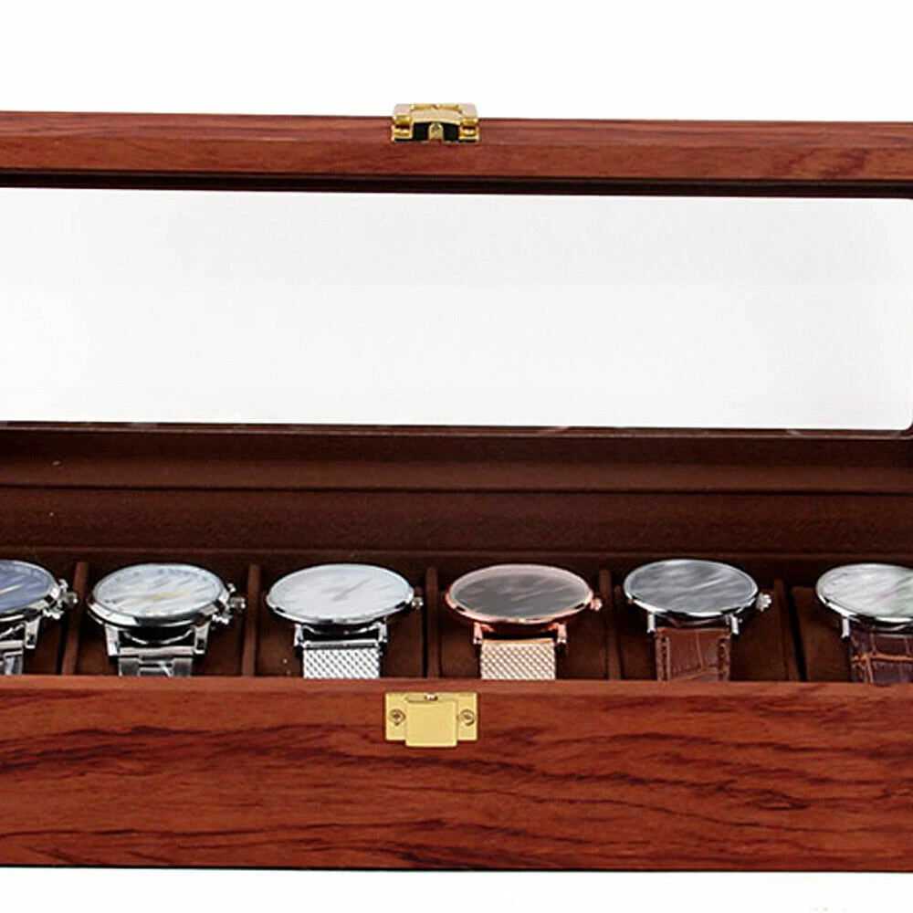 This watch display box is absolutely stunning! The rosewood finish gives it a luxurious vintage feel, and the soft velvet lining keeps my watches safe and scratch-free. The glass top lets me admire my collection without opening it, and the six slots fit all my favorite pieces perfectly. It looks elegant on my dresser and feels sturdy—definitely worth it for any watch lover who wants both style and function!