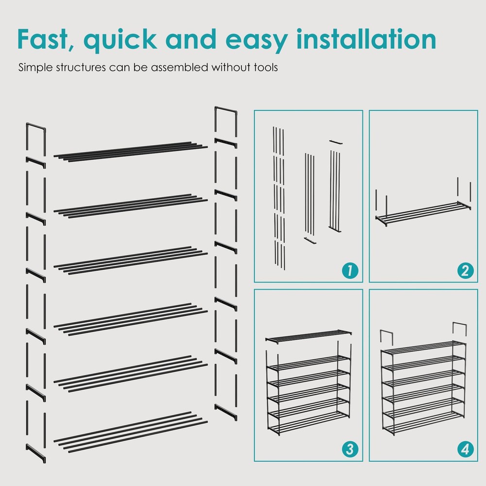 A shoe rack is an essential storage solution for any entryway or closet, providing an organized and tidy way to your footwear collection. These versatile racks come in various designs, from sleek and minimalist to rustic and decorative, to complement any home decor style. With multiple tiers or shelves, you can neatly arrange your shoes, keeping them off the floor and easily accessible. Constructed from durable materials like metal, wood, or plastic, a quality shoe rack offers sturdy support and ample space to accommodate numerous pairs. Whether you have a modest assortment or an extensive collection of shoes, a well-designed rack can transform cluttered chaos into an orderly display. Elevate your home organization and keep your shoes in pristine condition with this practical and space-saving solution. [Ample Storage Capacity]Efficiently organize your footwear with this spacious shoe rack measuring 11.2"D x 38.5"W x 42.5"H. Accommodates up to 16 pairs of men's shoes or 20 pairs of women's shoes, keeping them easily accessible. [Sturdy and Reliable]Constructed with robust thick metal tubes and quality plastic connectors, this shoe organizer supports up to 22 lbs per tier, ensuring your footwear is stored safely and securely. [Hassle-Free Assembly]Forget the tools! Our user-friendly design features numbered parts and clear illustrated instructions, making assembly quick and easy for anyone. [Low Maintenance Cleaning]Designed with a smooth, easy-to-clean surface, this shoe storage organizer wipes down effortlessly with a damp cloth, helping you maintain a tidy space with minimal effort. [Versatile & Stylish Design]With its sleek design and compact dimensions, this metal shoe shelf fits seamlessly into any room, including your closet, entryway, bedroom, or living room, enhancing your decor while providing functional storage.