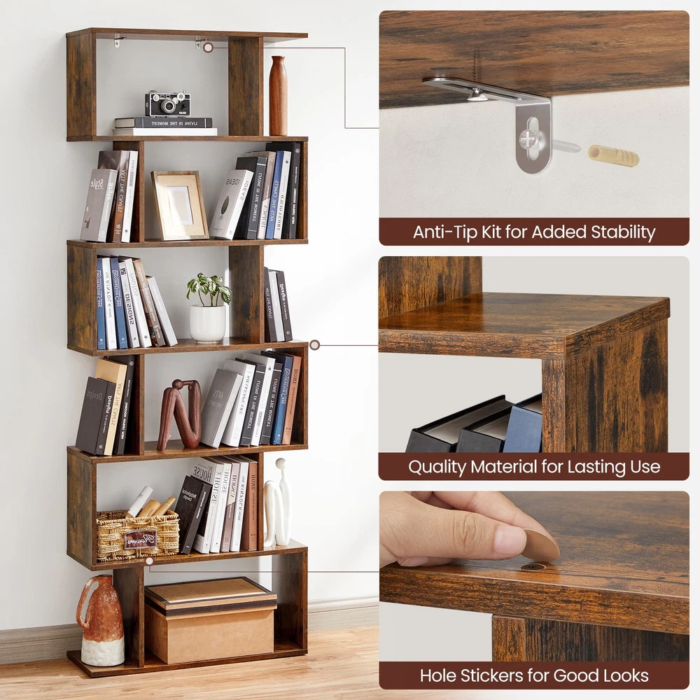 1. Perfect for any room! This sturdy 6-tier bookshelf offers tons of space for books, decor, or toys without wobbling thanks to its anti-tip kit. The professional finish with smooth edges and concealed screws makes it both safe and stylish—easy to assemble and looks great in any space. Highly recommend for extra storage!
